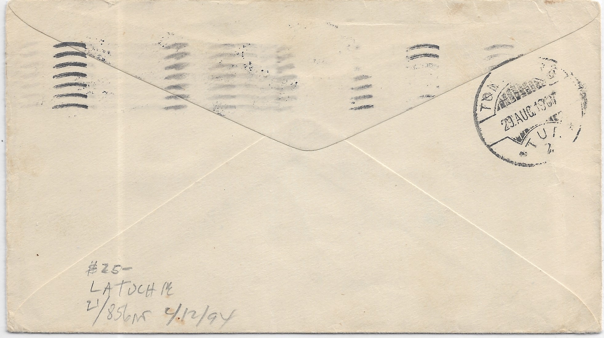 1950 Fortuna Ledge to Holy Cross, Alaska Emergency Flight. back stamped Holy Cross.