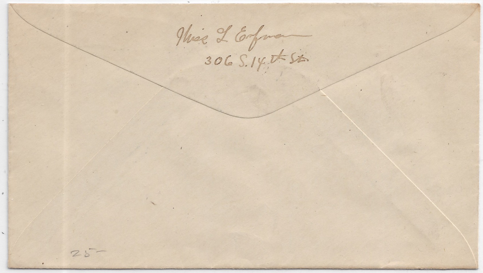 1901 New York, NY to Staunton, Va Officially sealed Sc # OX11a. back stamped New York & Staunton.