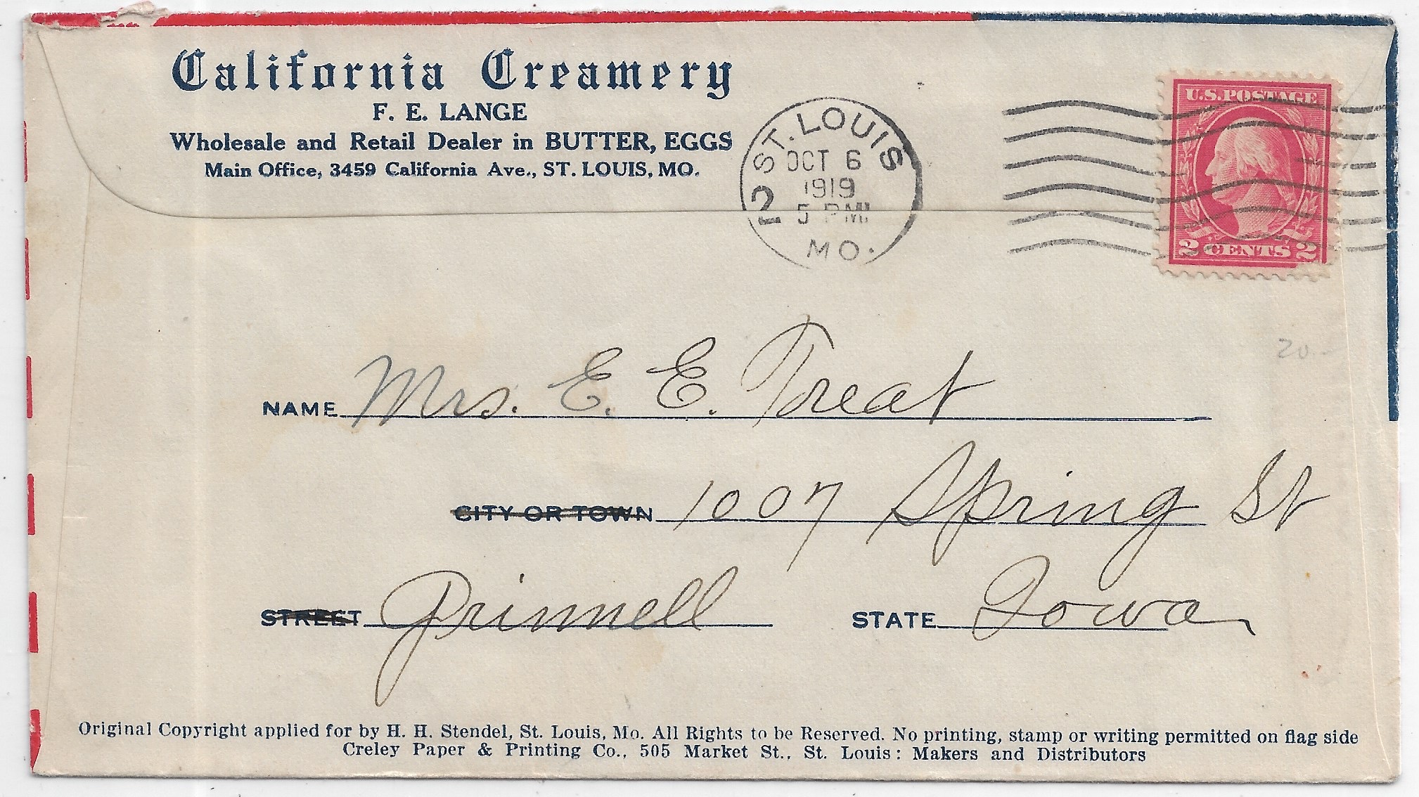 1919 St Louis, Mo to Grinnell, IA Patriotic Cover.