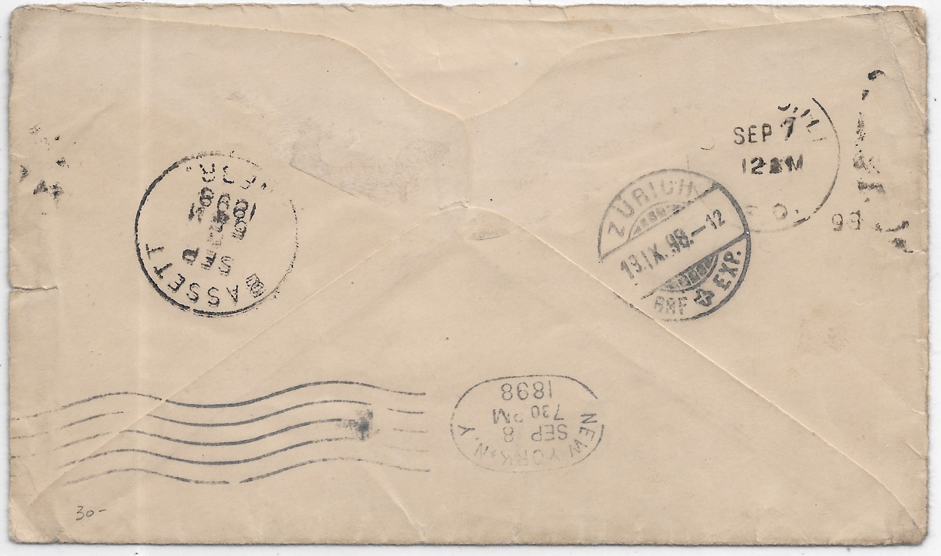1898 Sybrant, Ne to Zurich, Switzerland Spanish-American War Patriotic Cover. back stamped Bassett, Ne, New York, & Zurich.