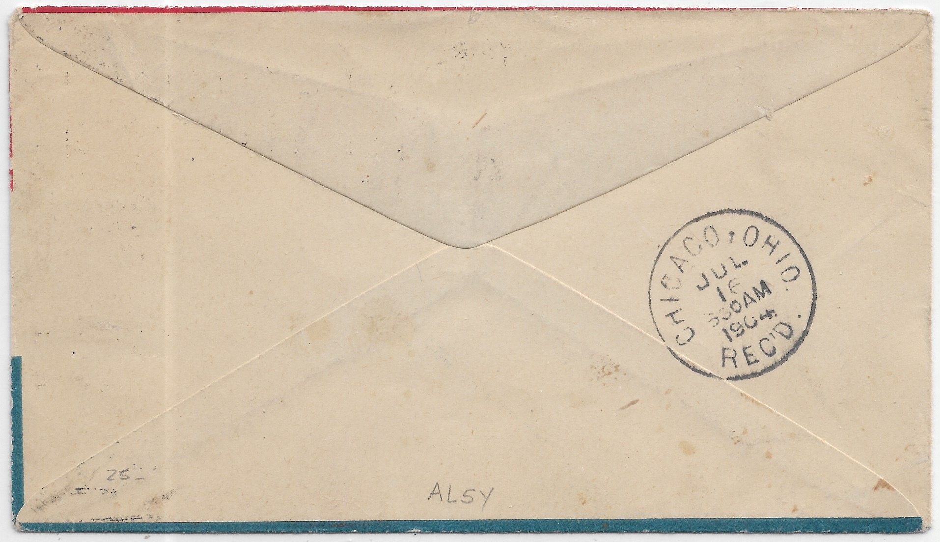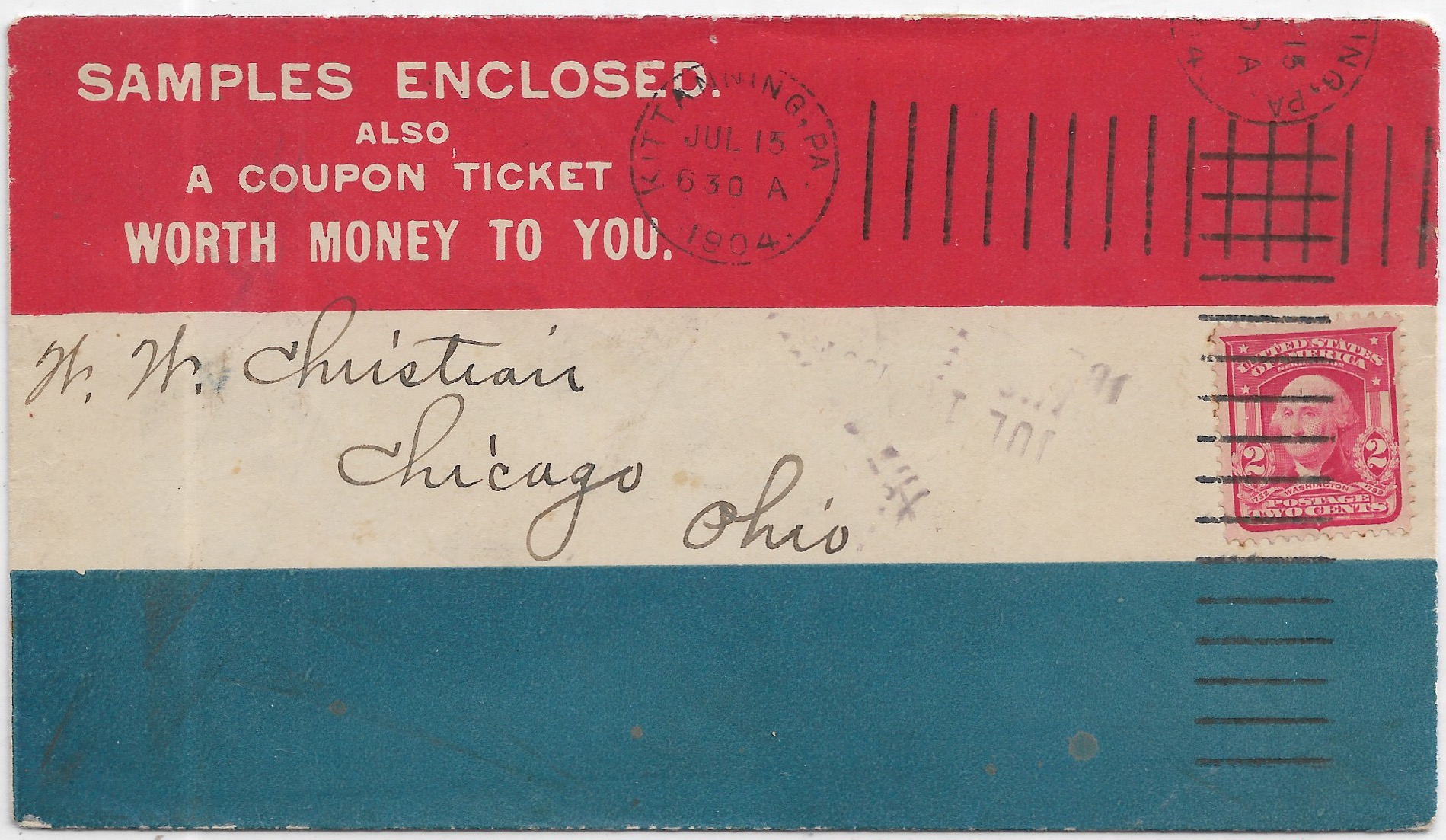 1904 Kittanning, Pa to Chicago, OH Advertising Cover. back stamped Chicago, OH.