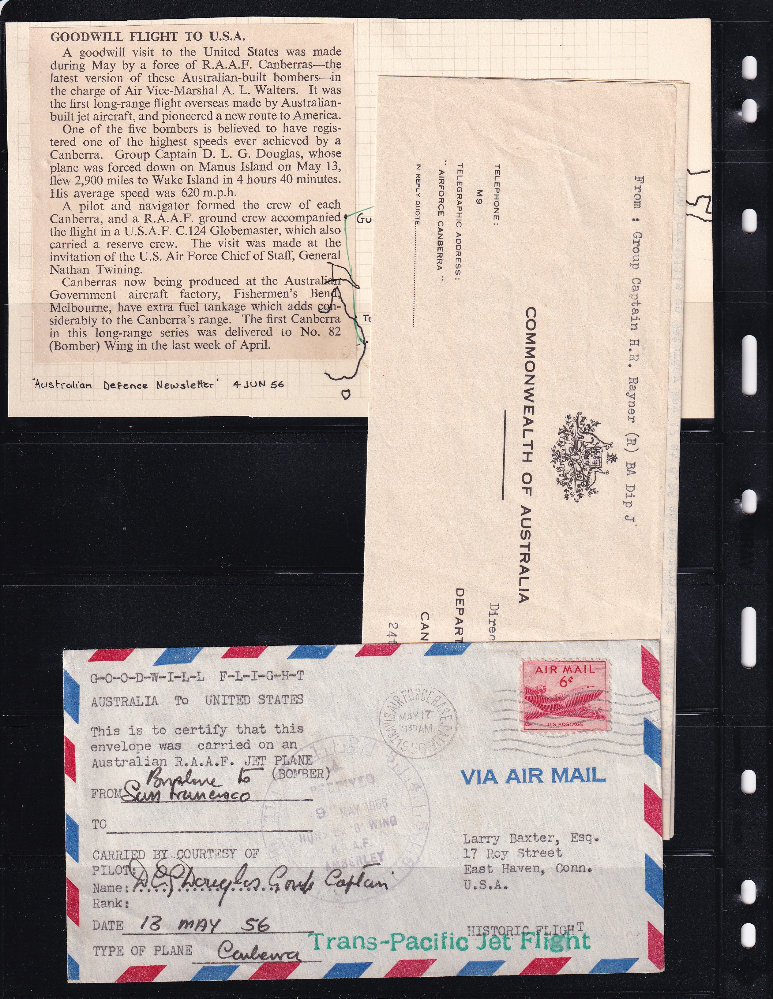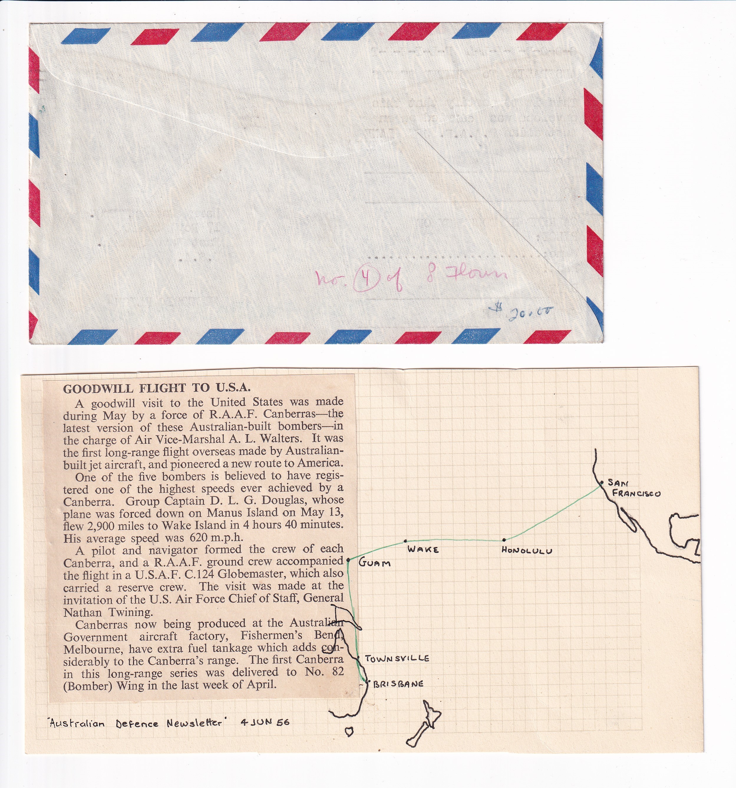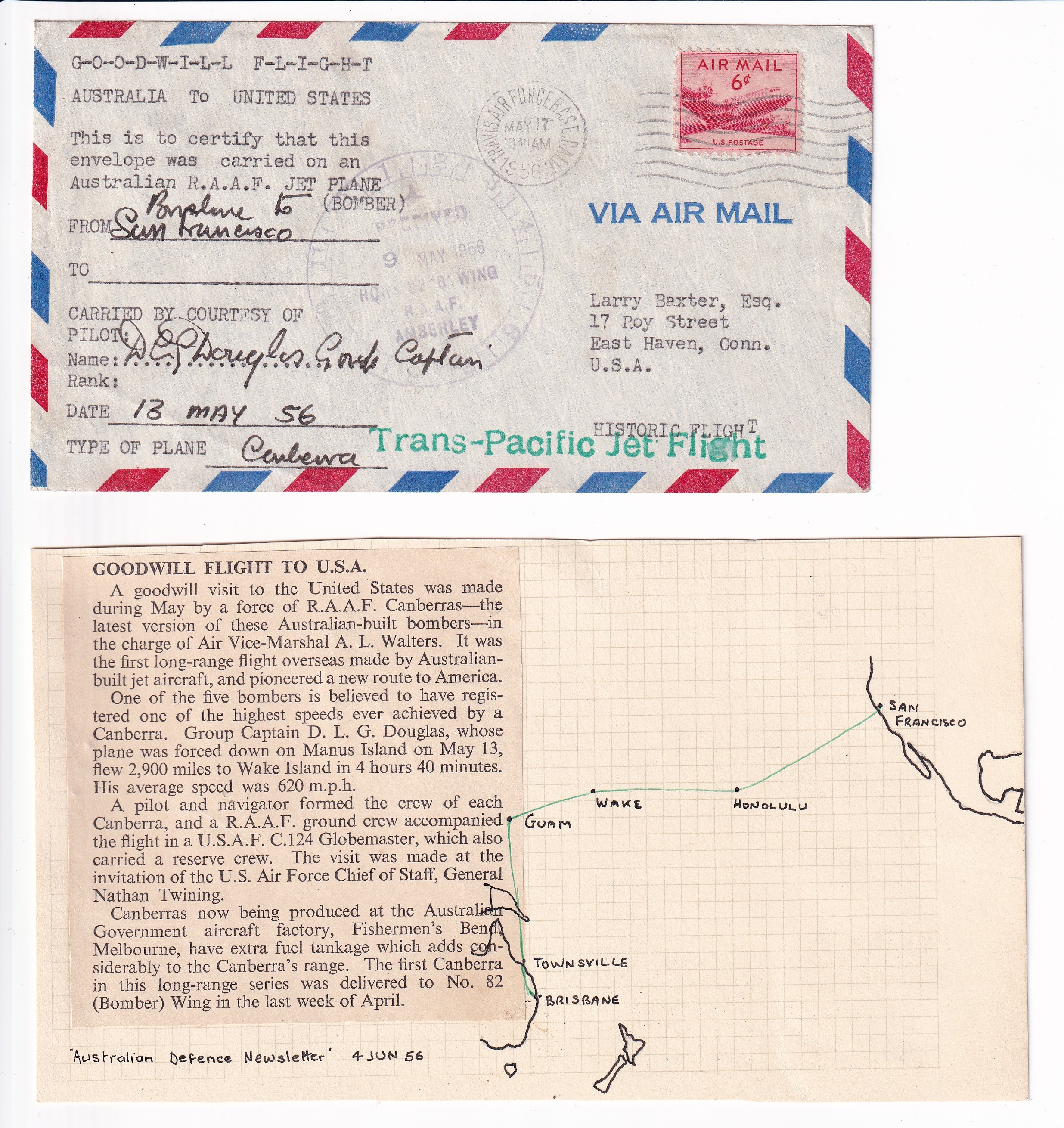 1936 Honolulu, Hawaii to Milford, Ct. 1st Passenger Service Trans-Pacific Clipper Airmail.