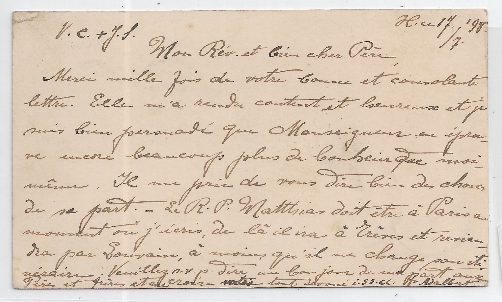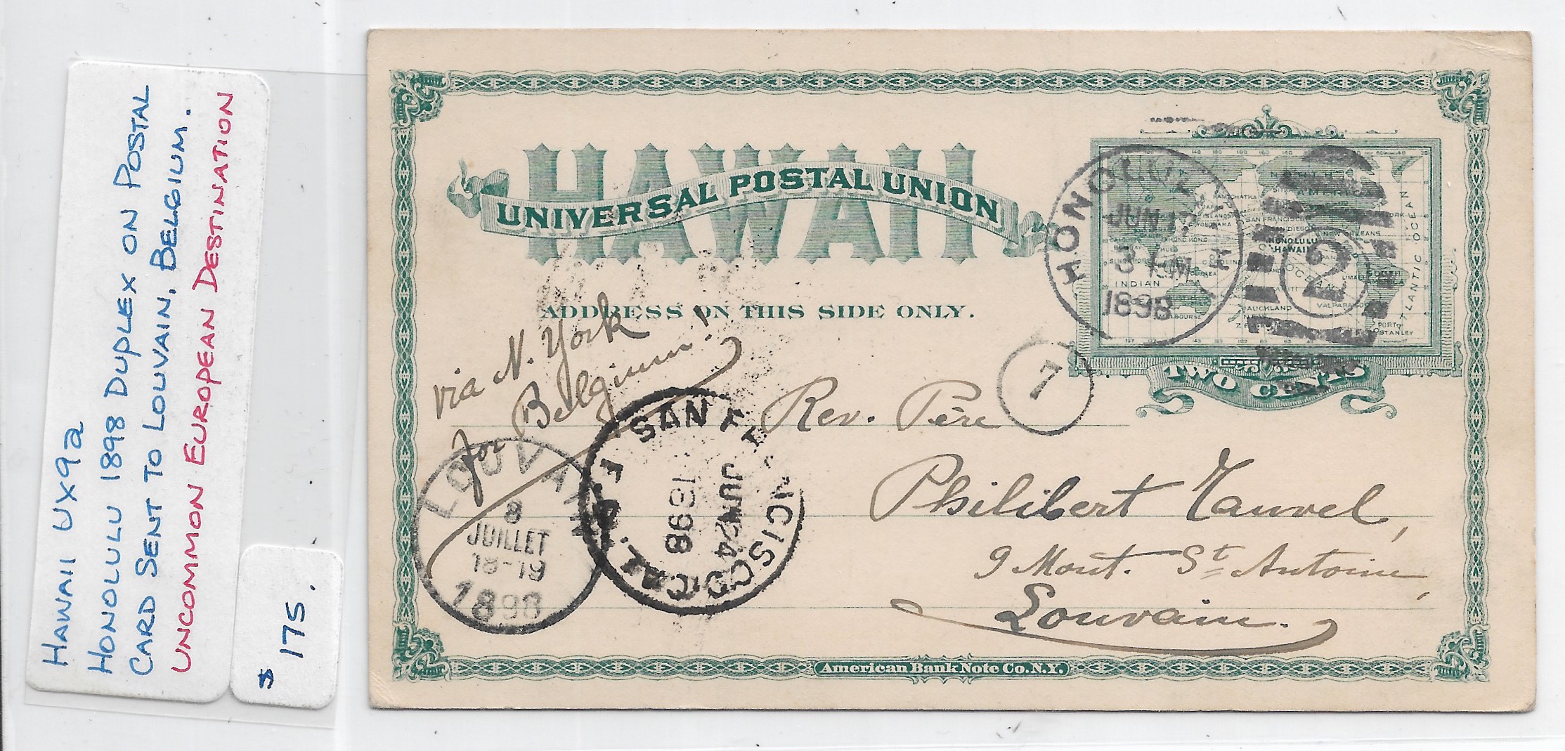 1898 Honolulu, Hawaii to Louvain, Belgium via San Francisco, Ca.