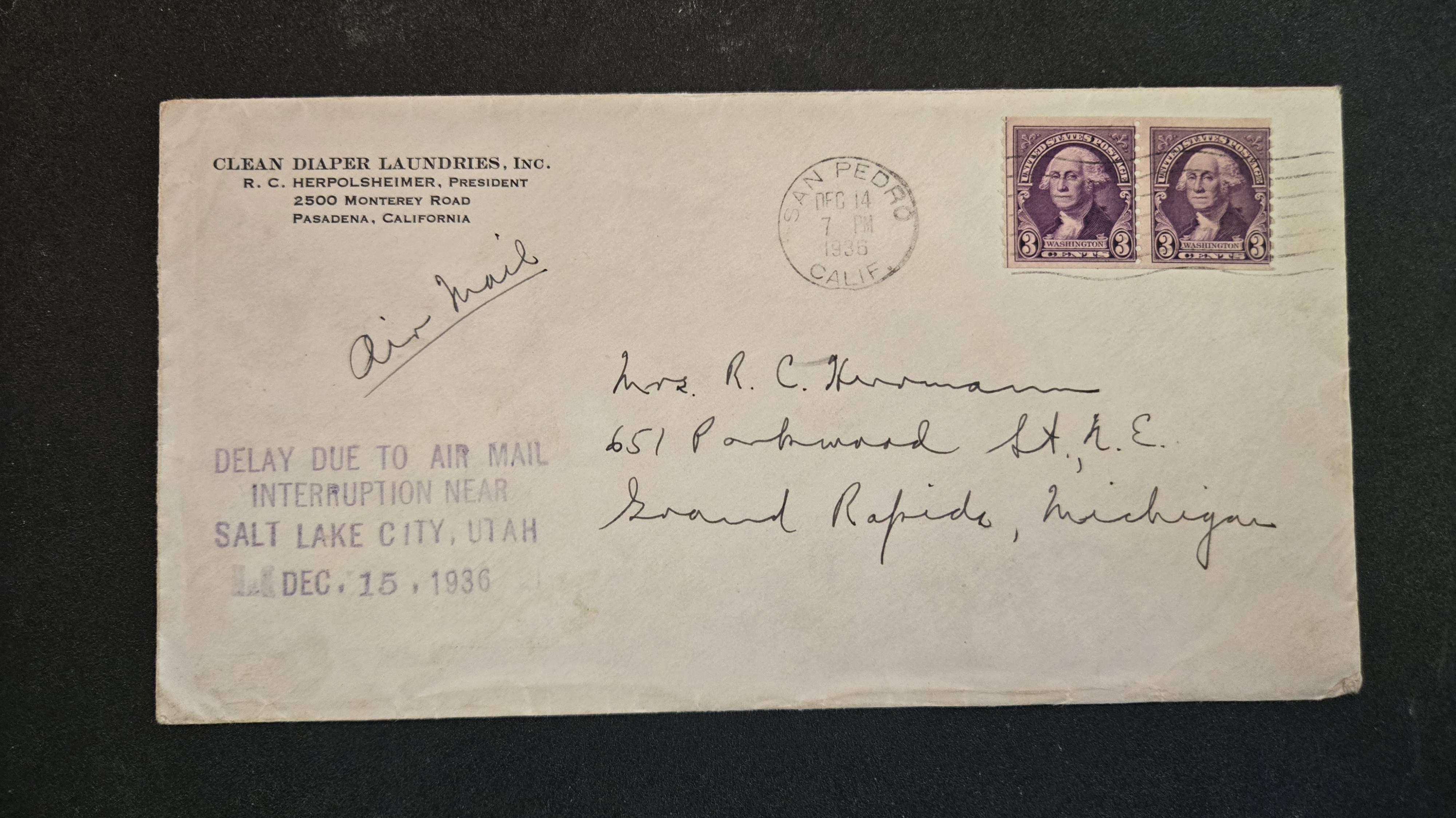 1936 San Pedro, Ca to Grand Rapids, Mi Crash Cover Salt Lake City, 15.