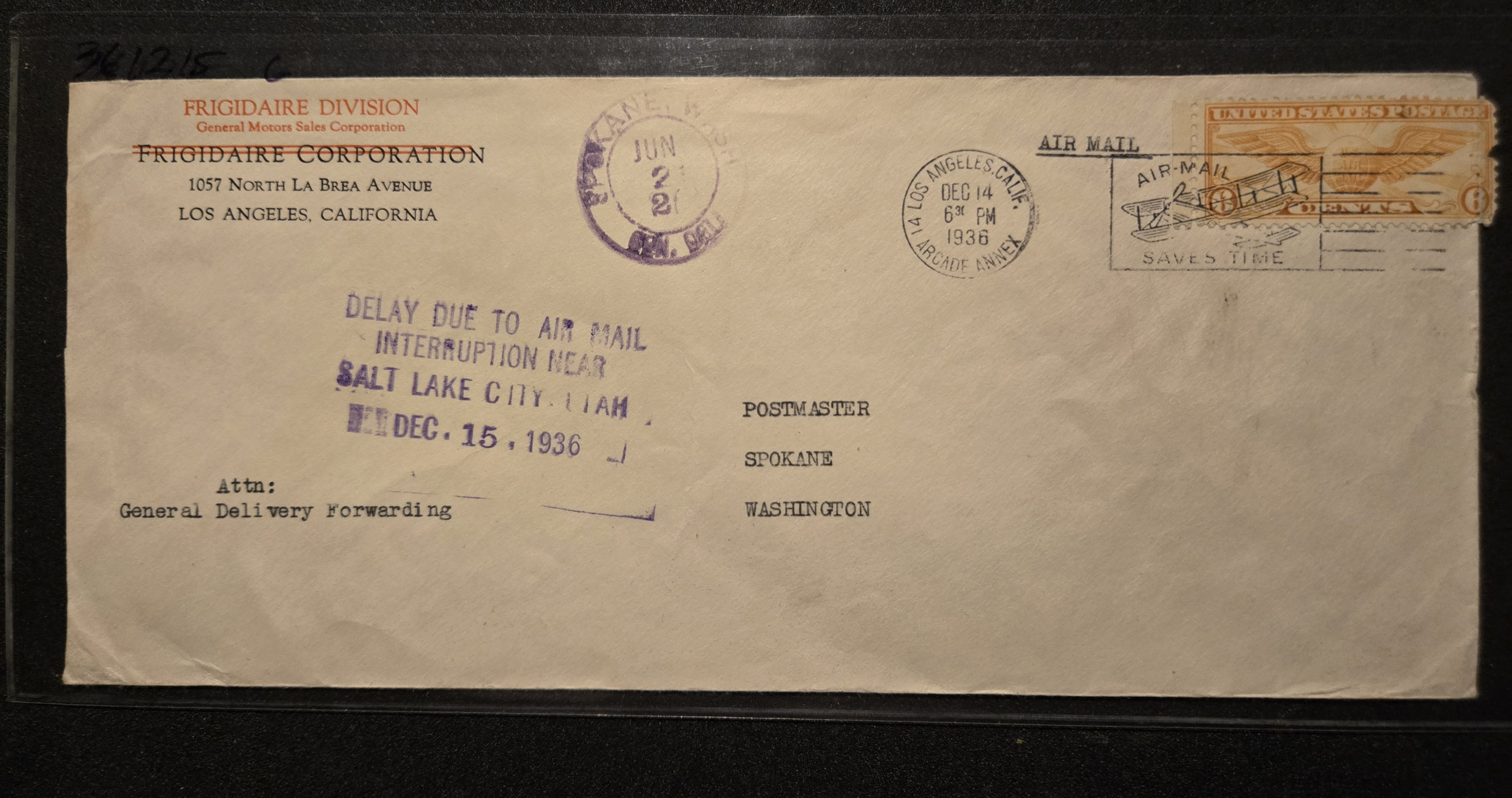 1936 Los Angeles, Ca to Spokane, Wa Crash Cover Salt Lake City, 15.