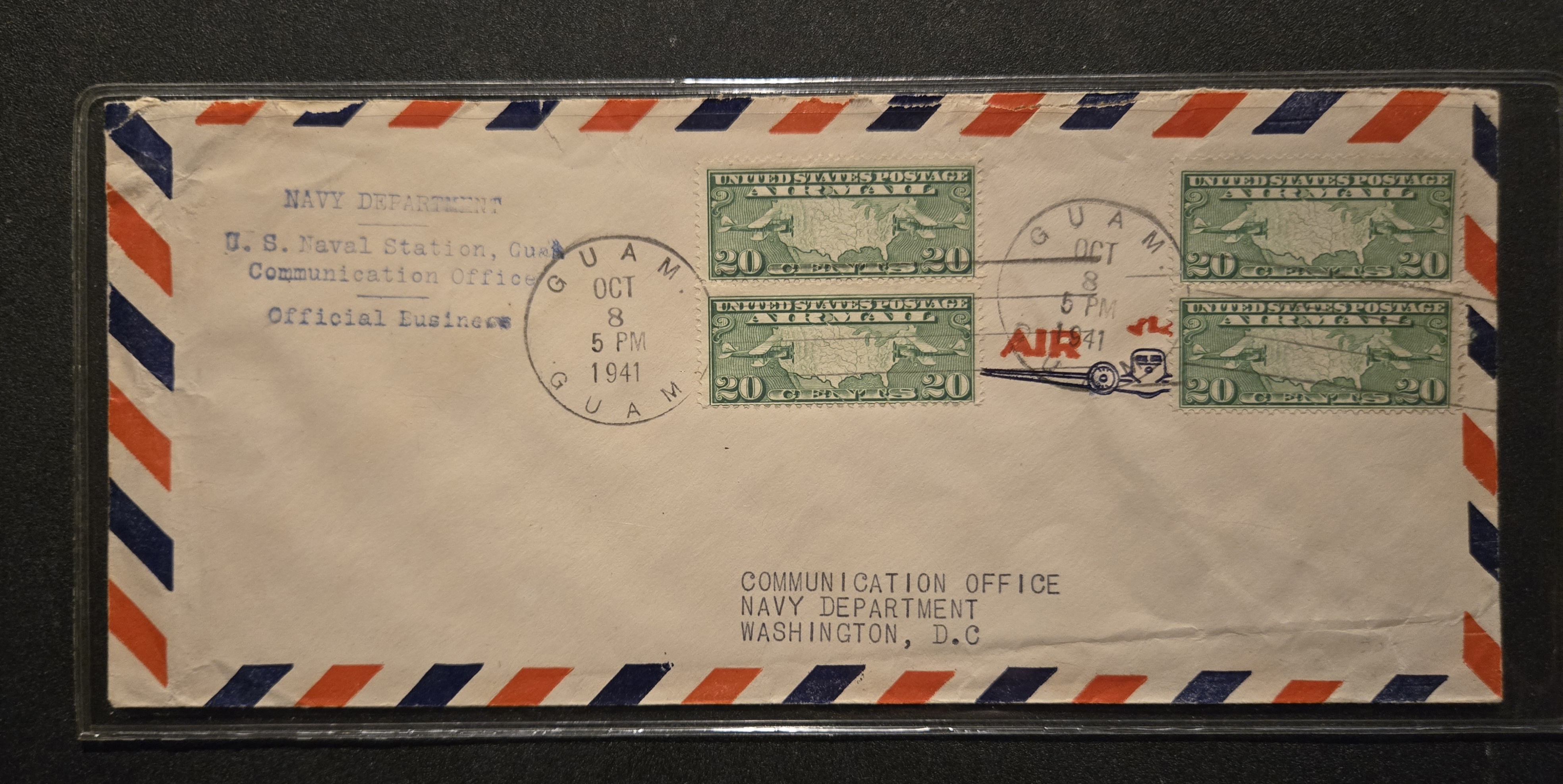 1941 Naval Sta, Guam to Washington DC Trans-Pacific Clipper Airmail (double rate).