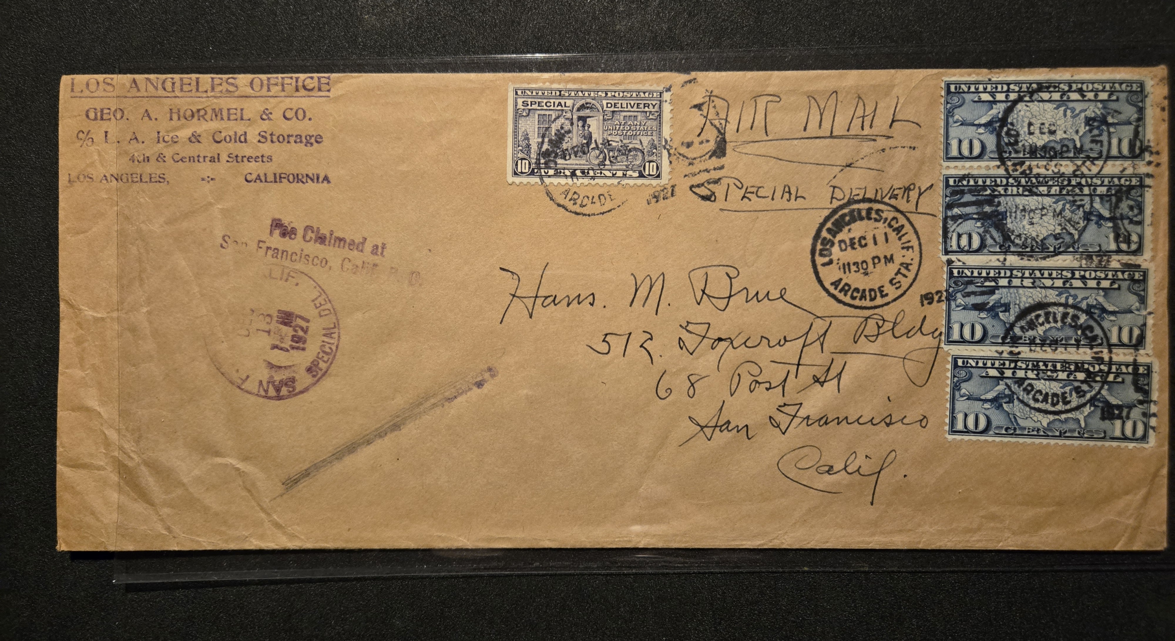 1927 Los Angeles to San Francisco, Ca Airmail Special Delivery.