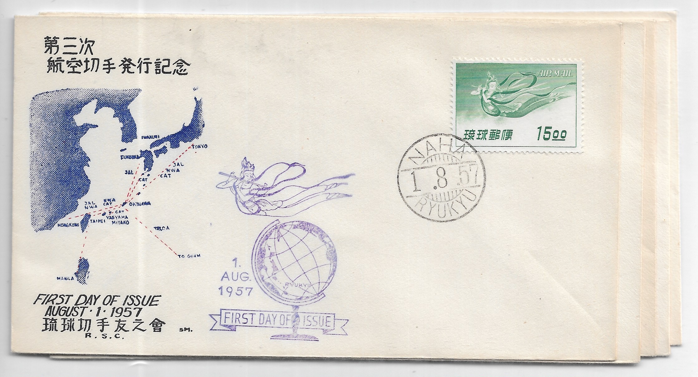 | Ryukyus Island: 1957 Airmail Set FDC. | Price: $40.00