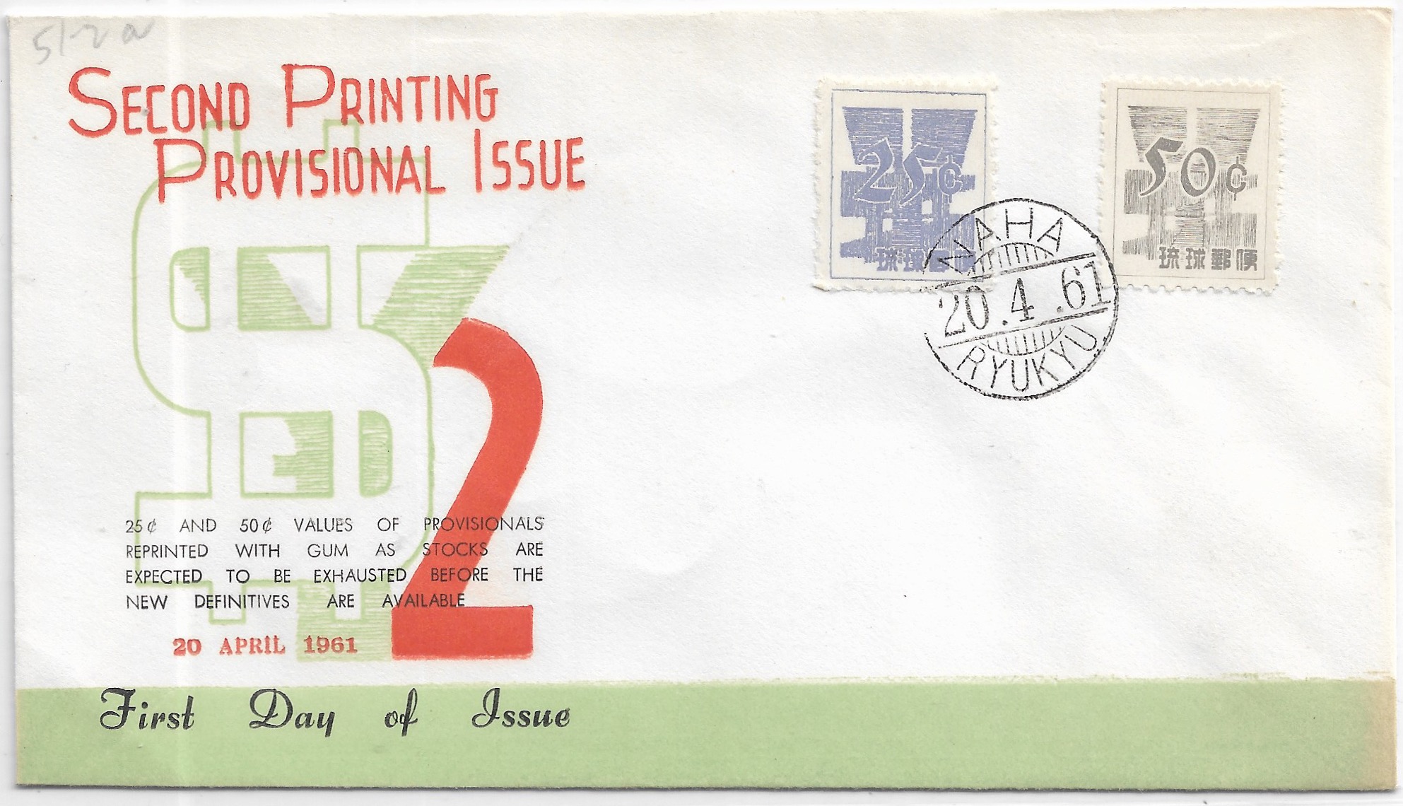 | Ryukyus Island: 1961 26c & 50c 2nd Printing Provisional Issue FDC. | Price: $30.00