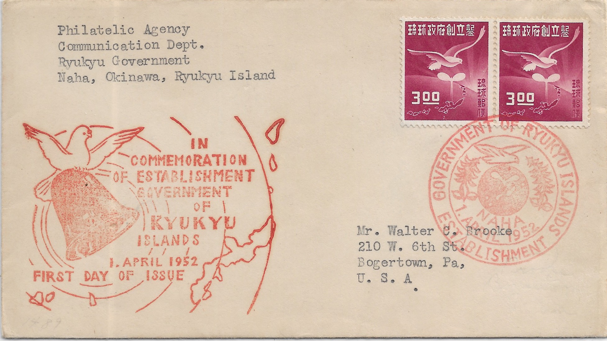 | Ryukyu Island: 1952 Establishment of the Ryukyu Govt FDC. | Price: $70.00