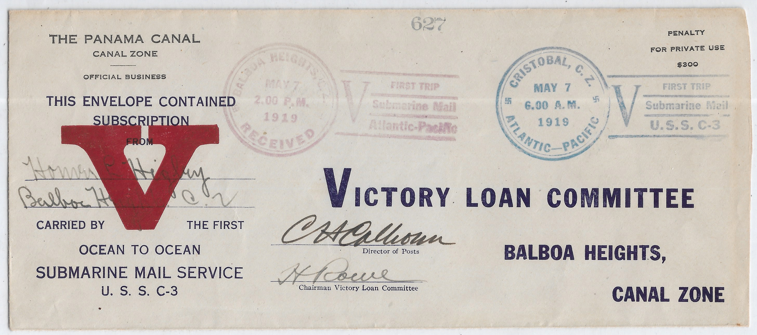 | 1919 Cristobal to Balboa Heights, Canal Zone 1st Submarine Mail USS C-3. | Price: $50.00