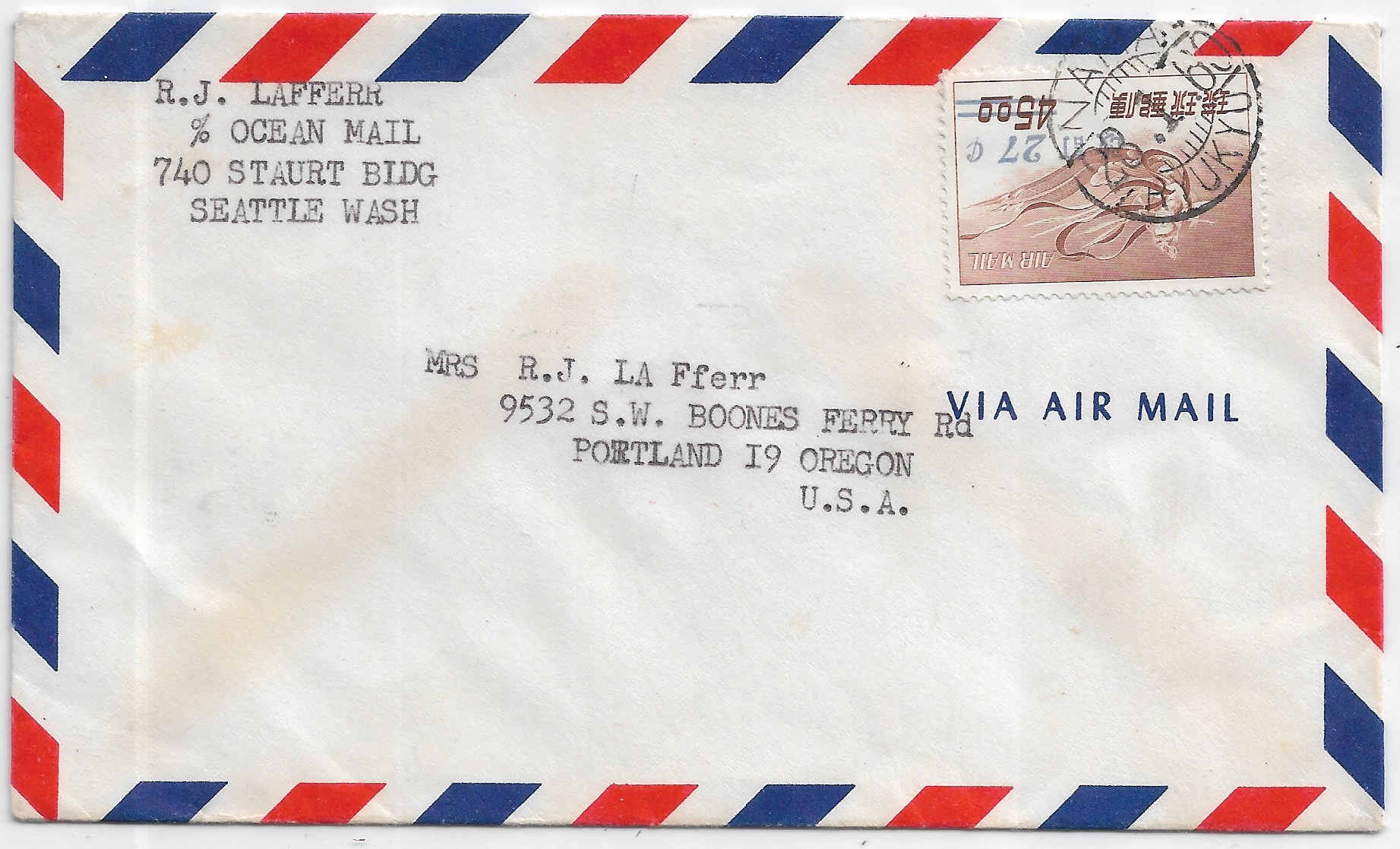 | 1960 Naha, Ryukyu Island to Portland, Or Airmail. | Price: $25.00