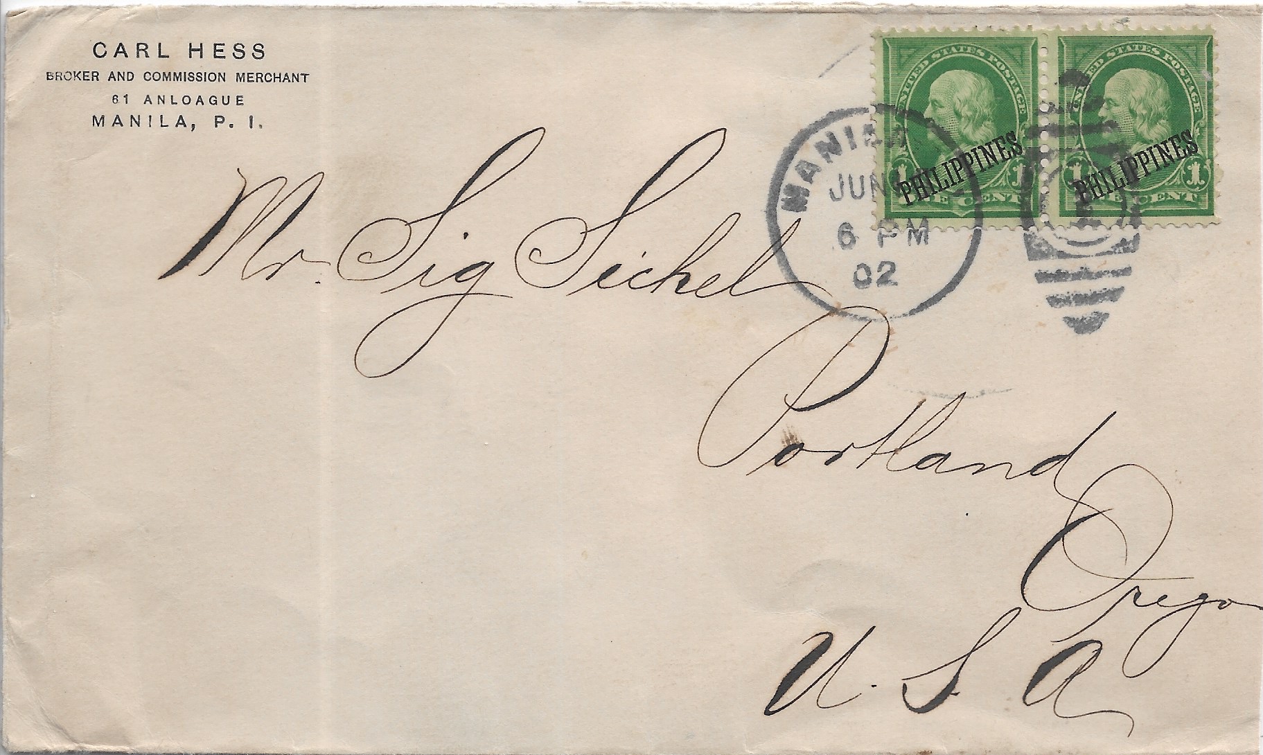 | 1902 Manila, Philippines to Portland, Or. back stamped Portland. | Price: $20.00