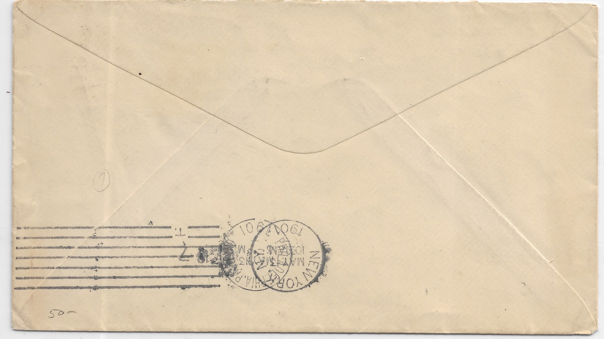 | 1901 Playa Ponce, Puerto Rico to Philadelphia, Pa. back stamped New York & Philadelphia. | Price: $50.00