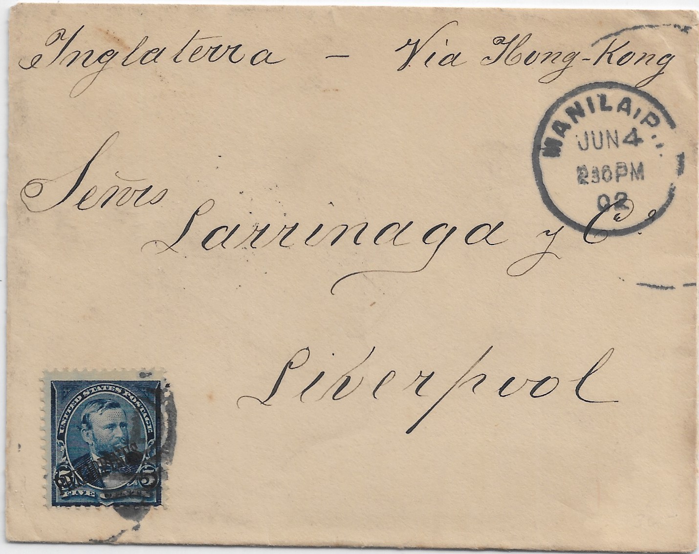 | 1902 Manila to Liverpool, England via Hong Kong. back stamped Liverpool. | Price: $45.00