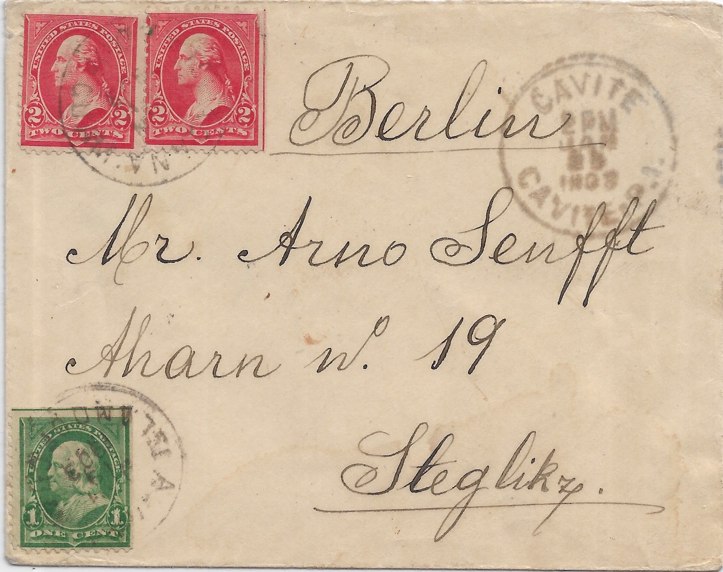 | 1903 Agana, Guam to Berlin, Germany via Cavite, Philippines. back stamped Manila. | Price: $200.00
