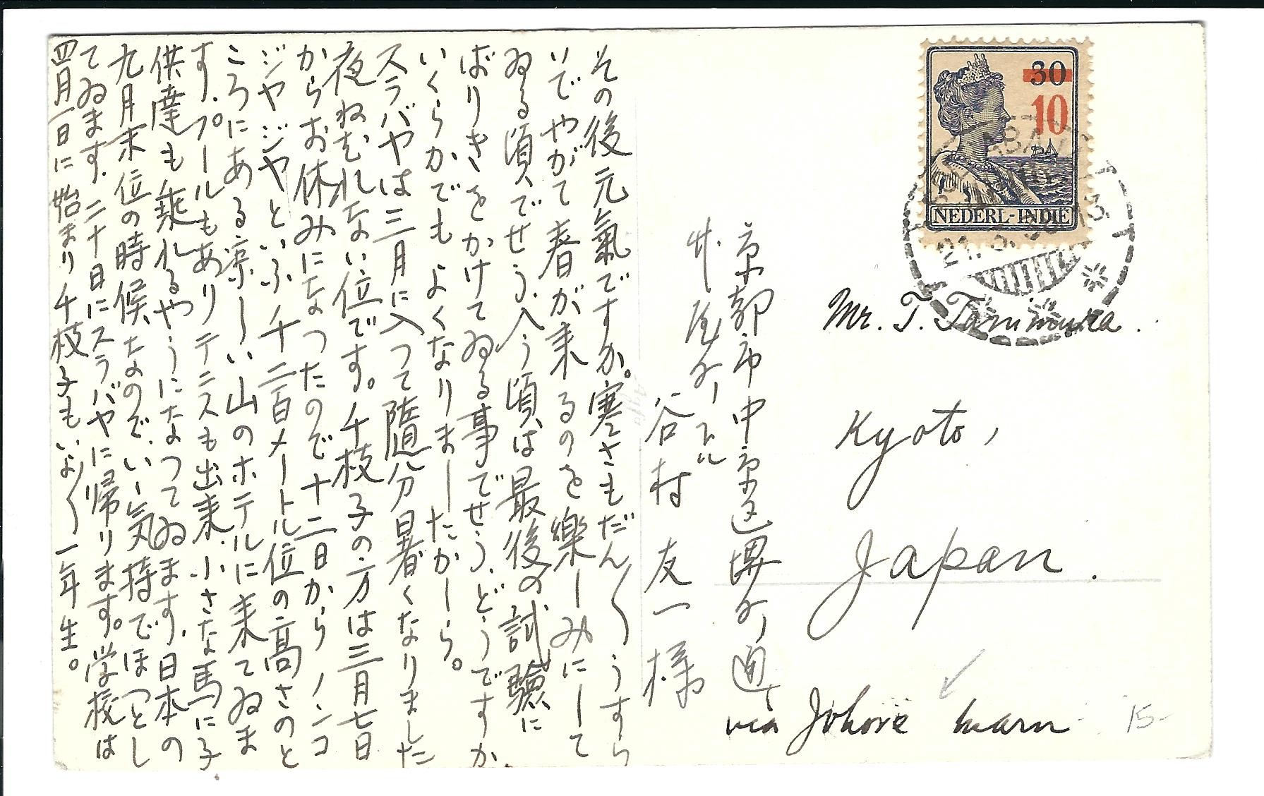 | Soeraban, Netherlands INdies to Kyoto, Japan 1938 via Johore. | Price: $15.00