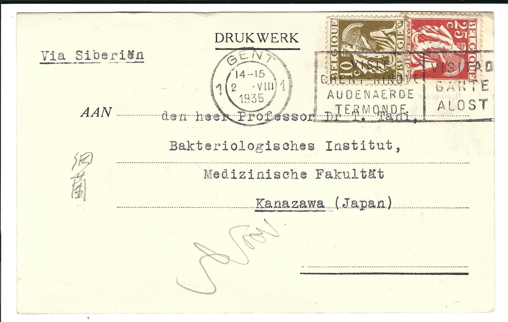 | Gent, Belgium to Kanazawa, Japan 1935. | Price: $15.00