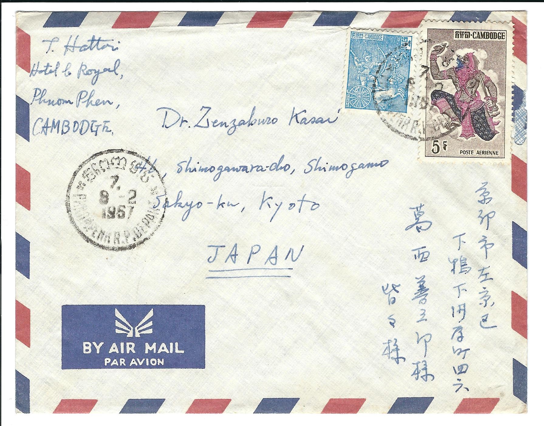 | Phnon Phen, Cambodia to Kyoto, Japan 1957. backstamped Osaka. | Price: $15.00