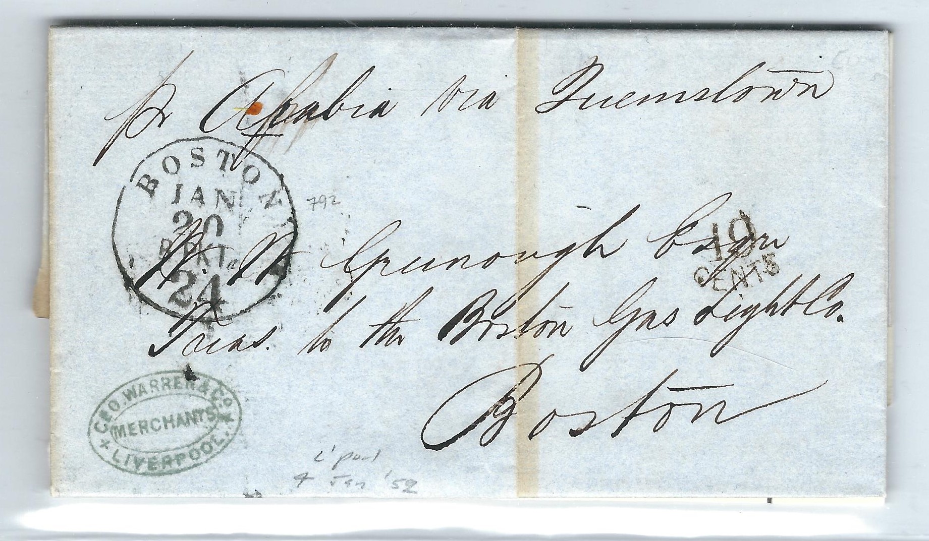 | Stampless: Liverpool, England to Boston, Ma 1862 per Cunard Lines R.M.S. Arabria. backstamped Liverpool. | Price: $300.00