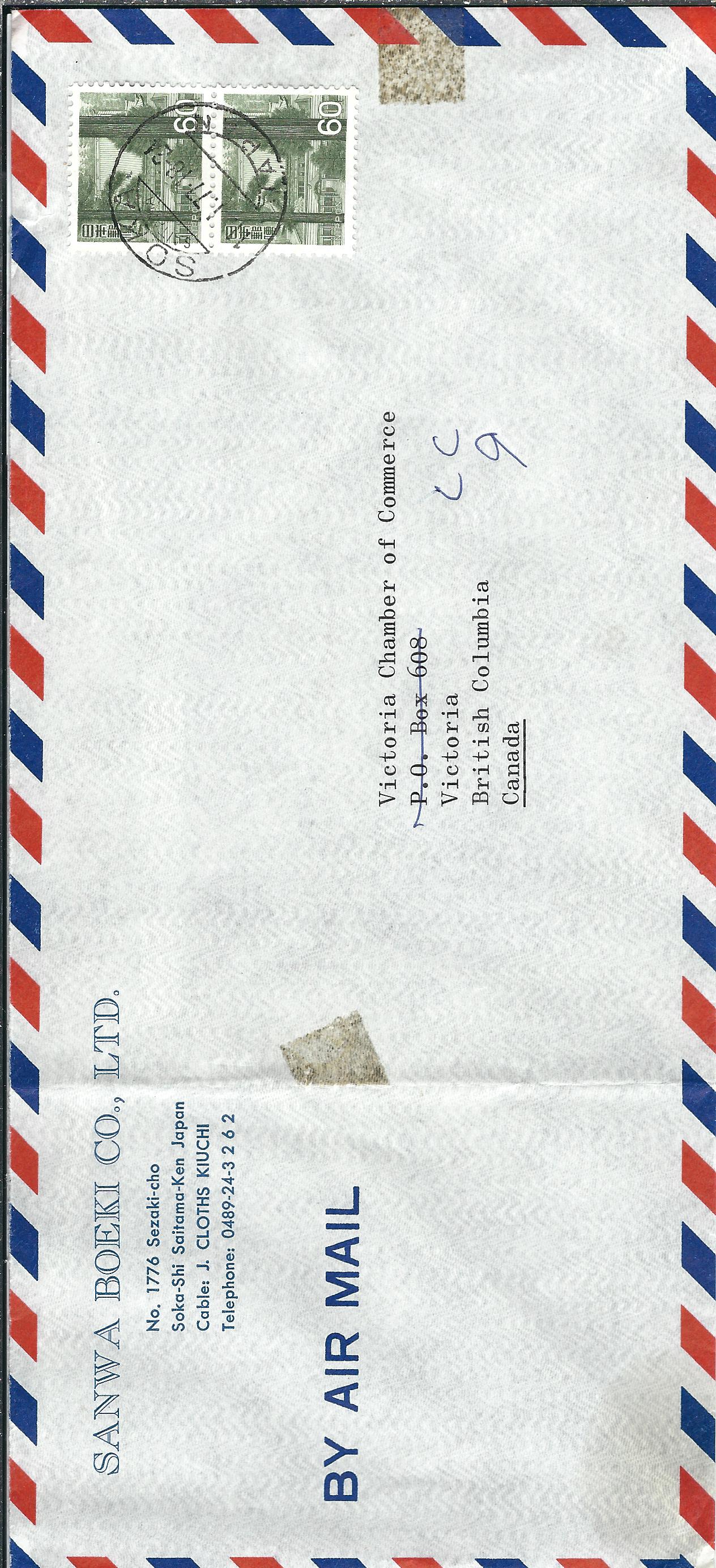 | Yokohama, Japan to Victoria, BC, Canada 1978 Airmail. | Price: $10.00