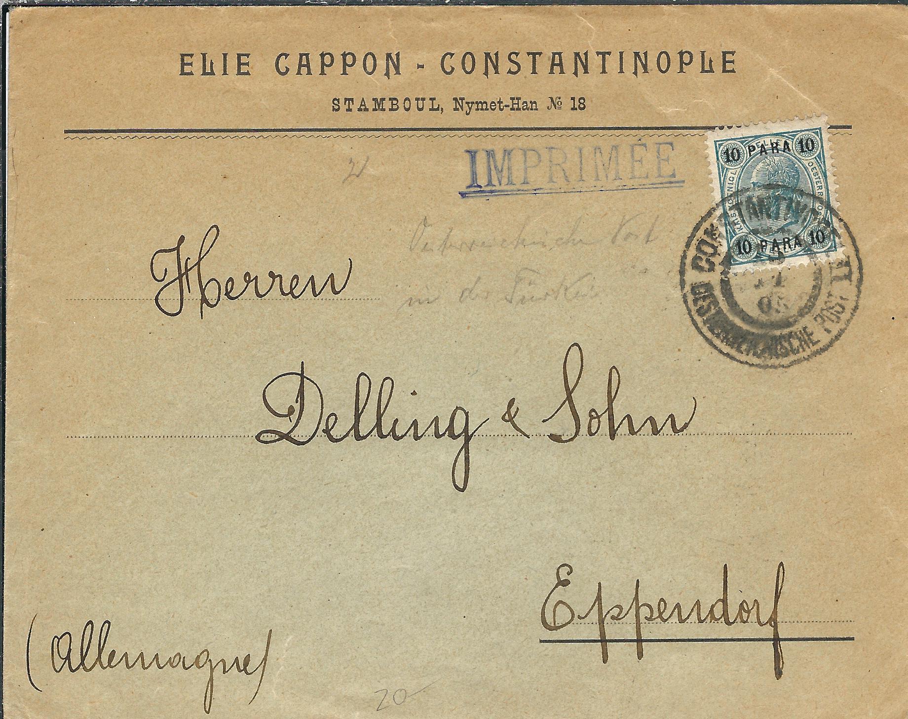 German Offices in Constantinople, Turkey to Loerrach, Baden 1904.