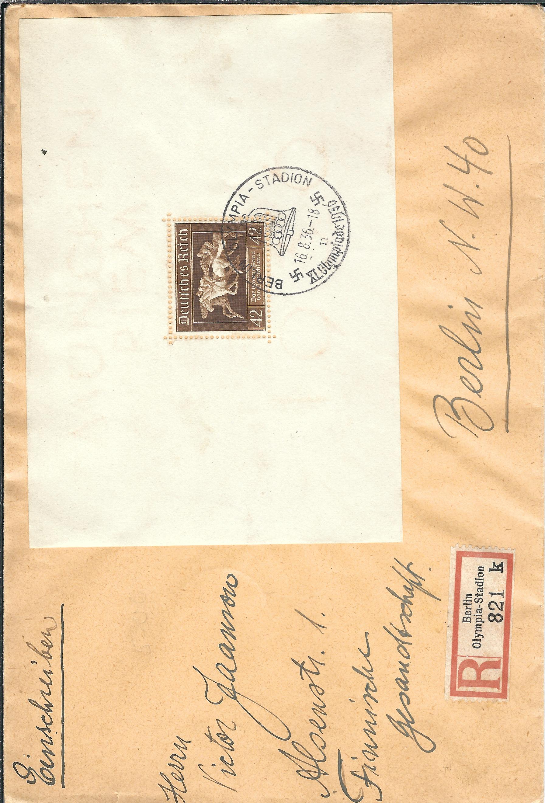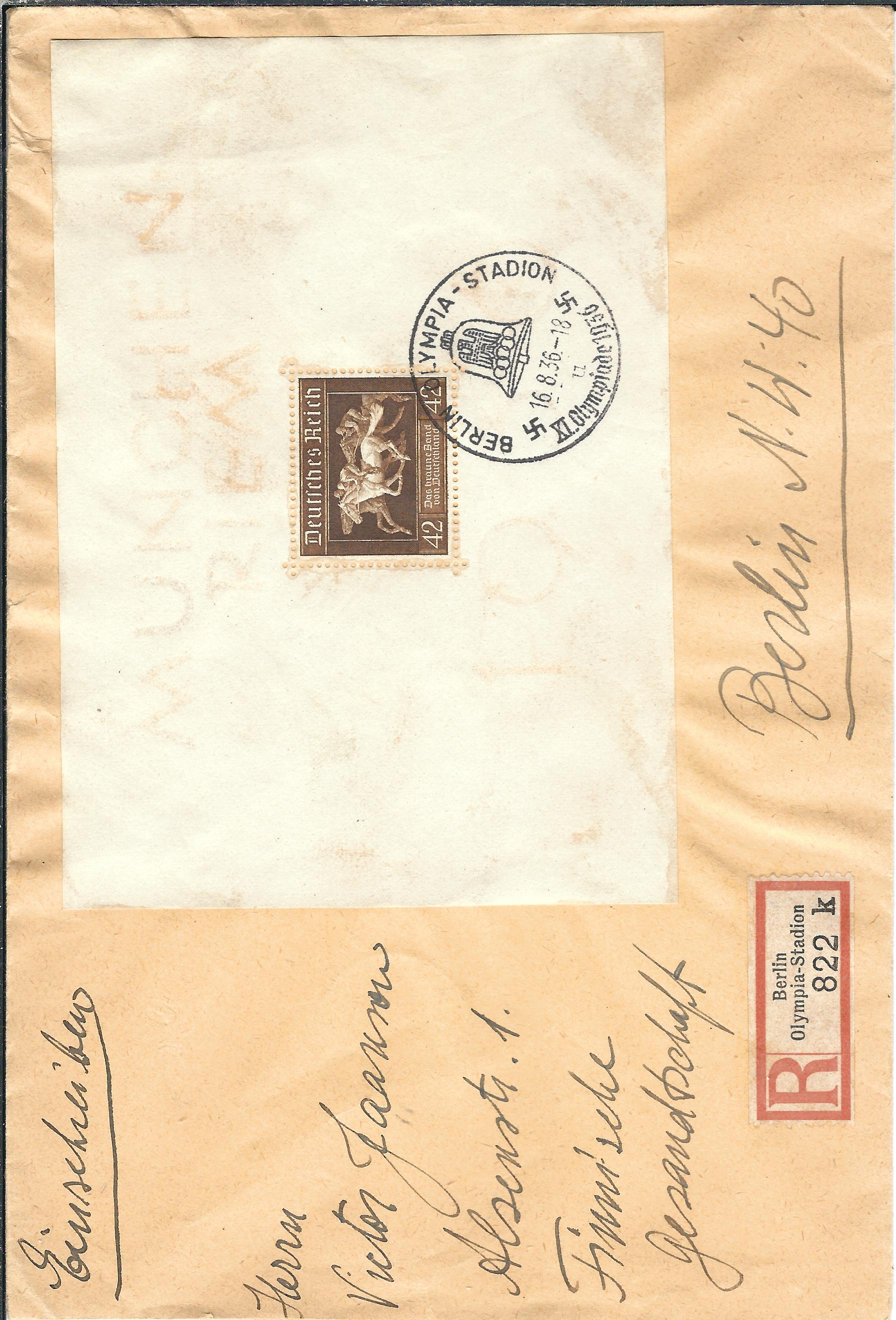 13 Aug 1936 Berlin Olympics Stadium p/m on Colorful Olympic Postcard.