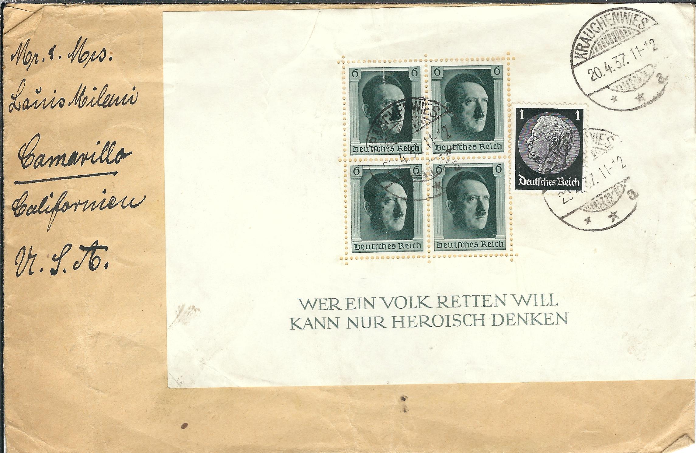 Magdeburg-Buckau, Germany to Los Angeles, Ca 1930 Mi #450-453. back stamped Los Angeles.