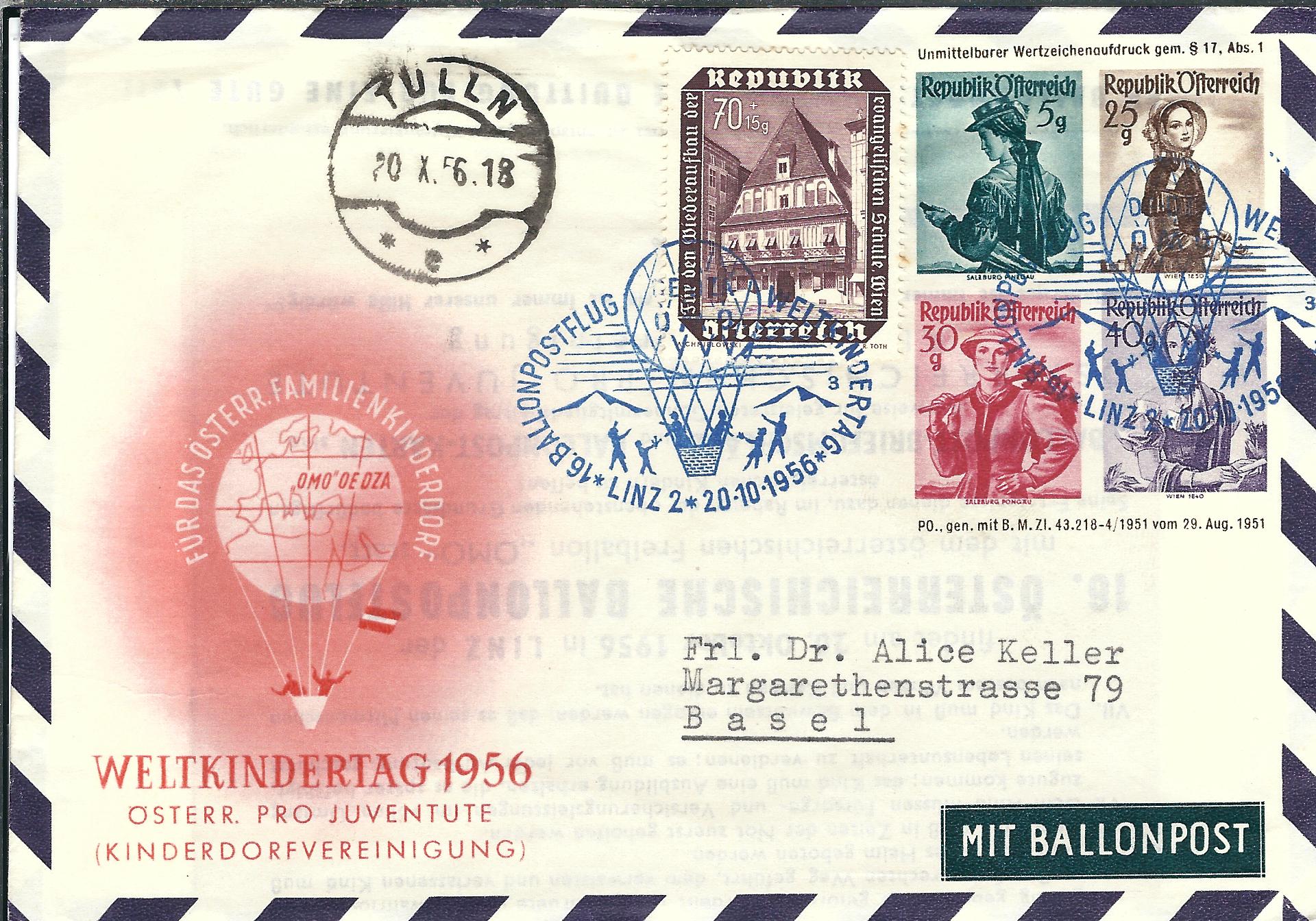 Salzburg to Basel, Switzerland 1956 Balloonpost.