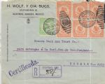 1930 1st Flight Mexico City, Mexico to Leopoldville, Belgian Congo Registered Returned to Sender. Back stamped Mexico City, Paris, Matadi, & Leopoldville.