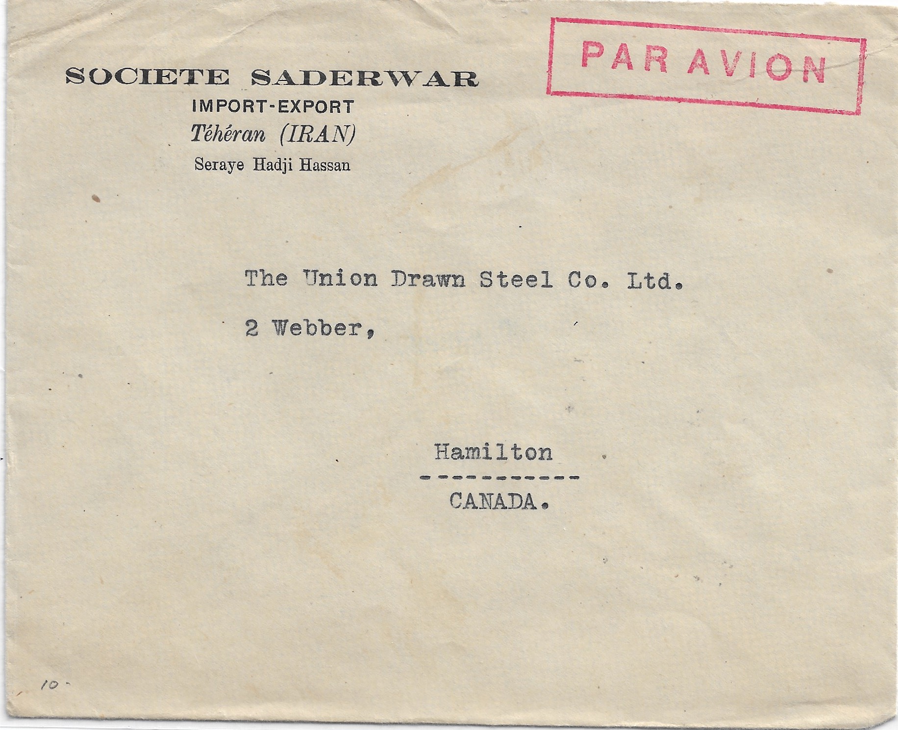 1945 Tehran, Iran to Hamilton, Canada Airmail.