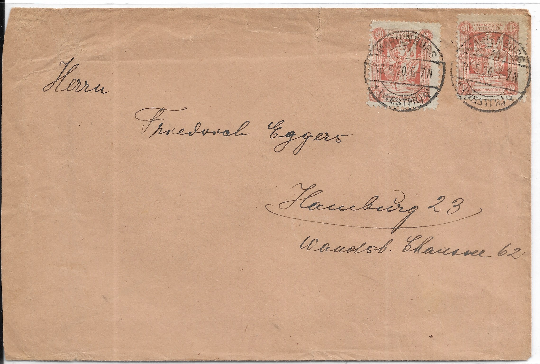 1920 Marienwerder to Hamburg, Germany.