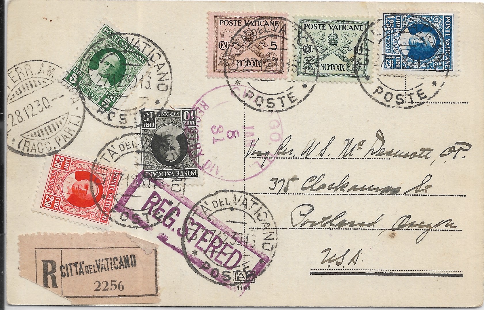 1931 Vatican City to Portland, Or Registered Post Card. back stamped Portland.