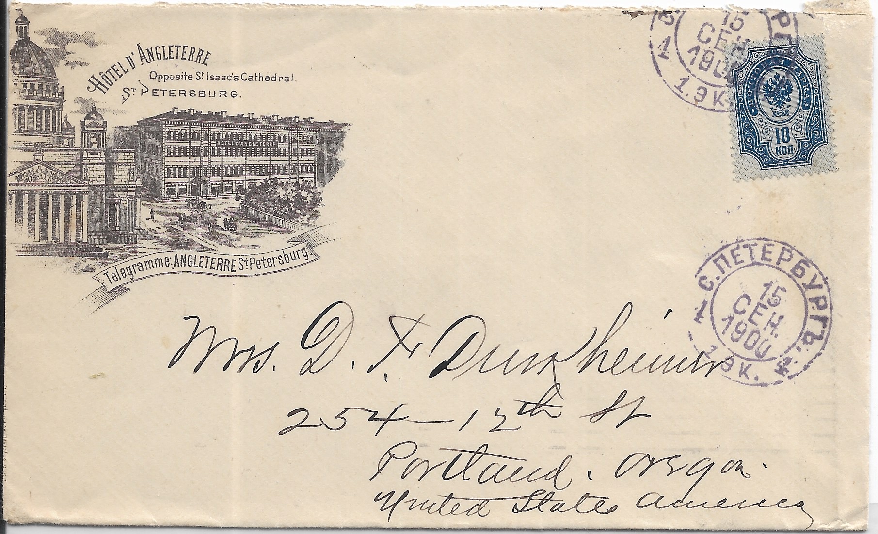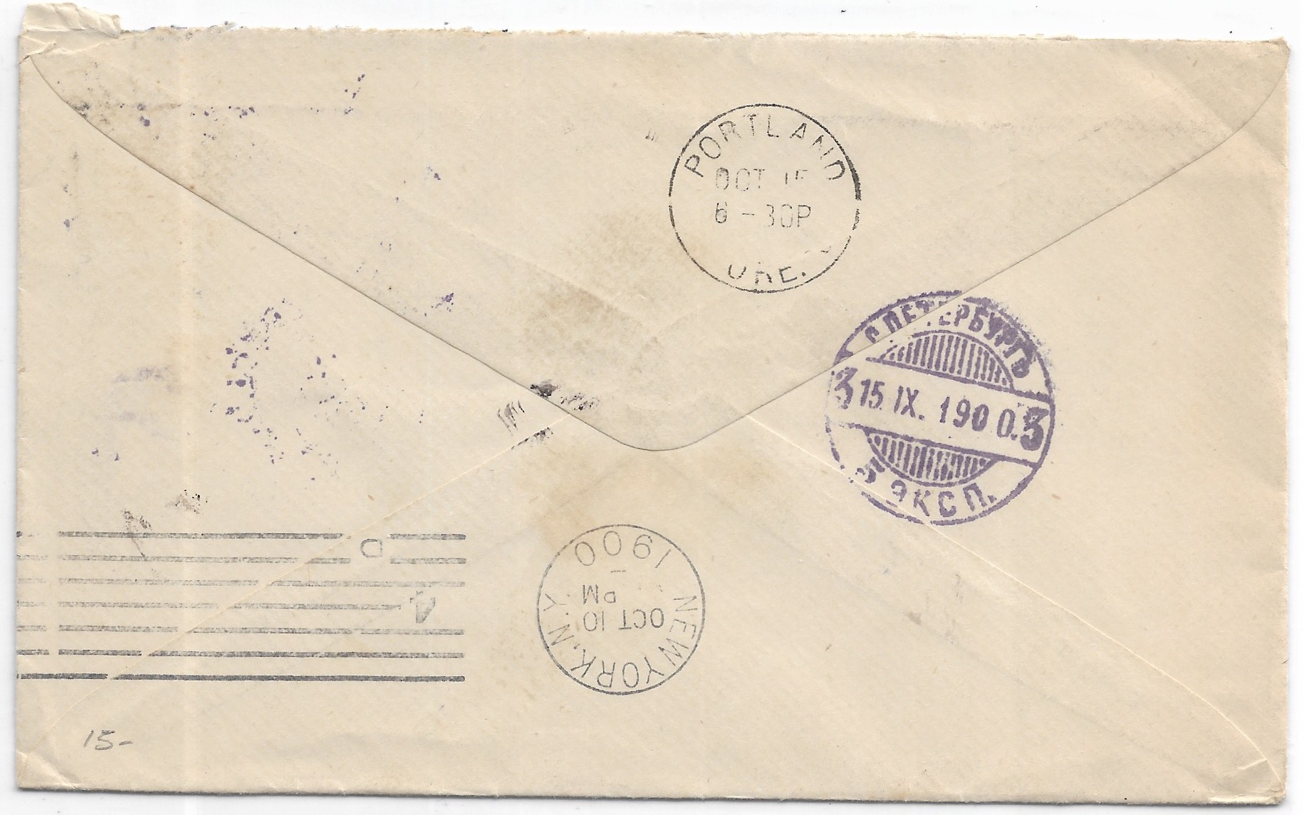 1900 St Petersburg, Russia to Portland, Or. back stamped New York & Portland.