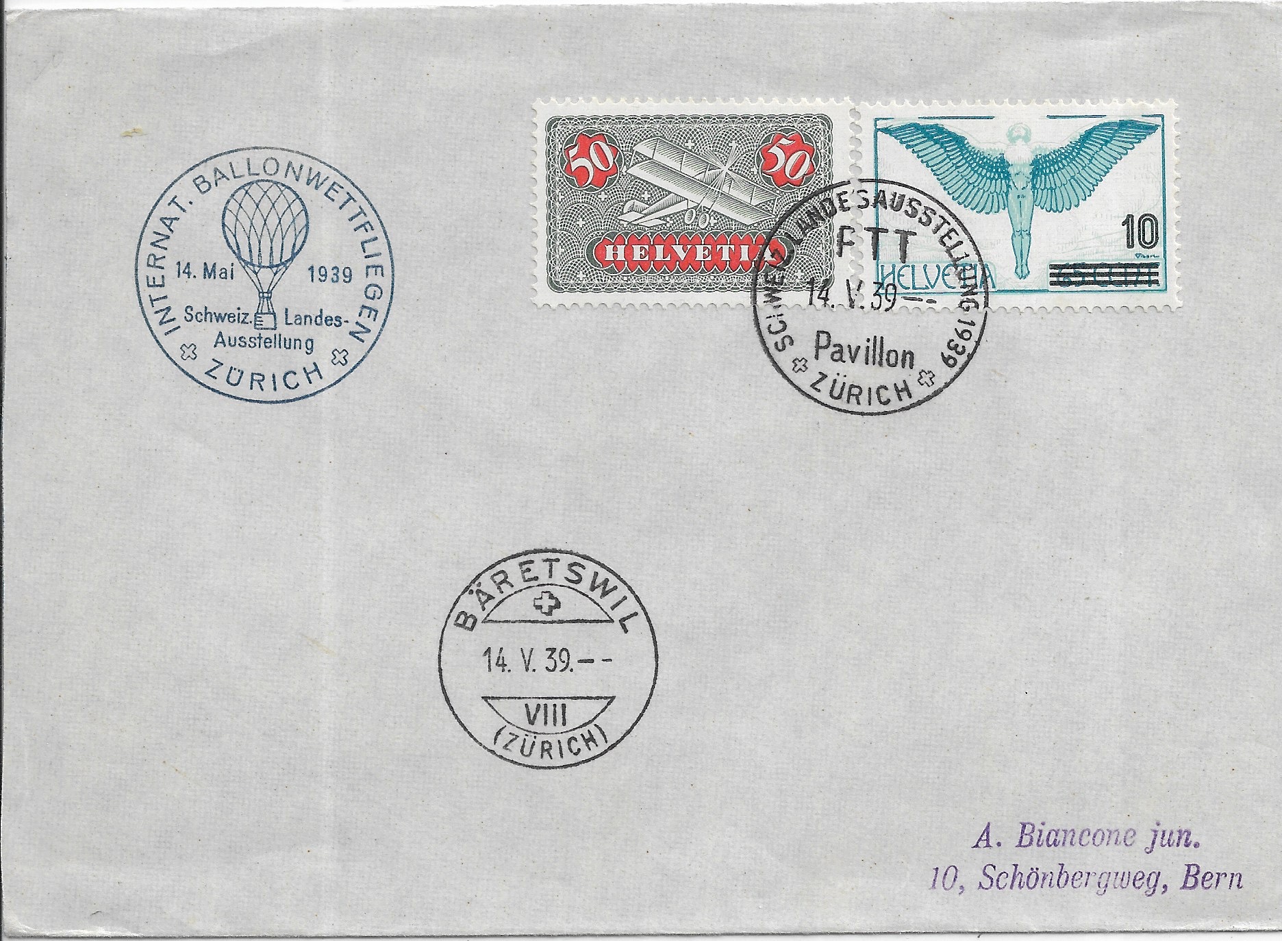 1939 1st Balloon Flight Zurich to Bern, Switzerland.