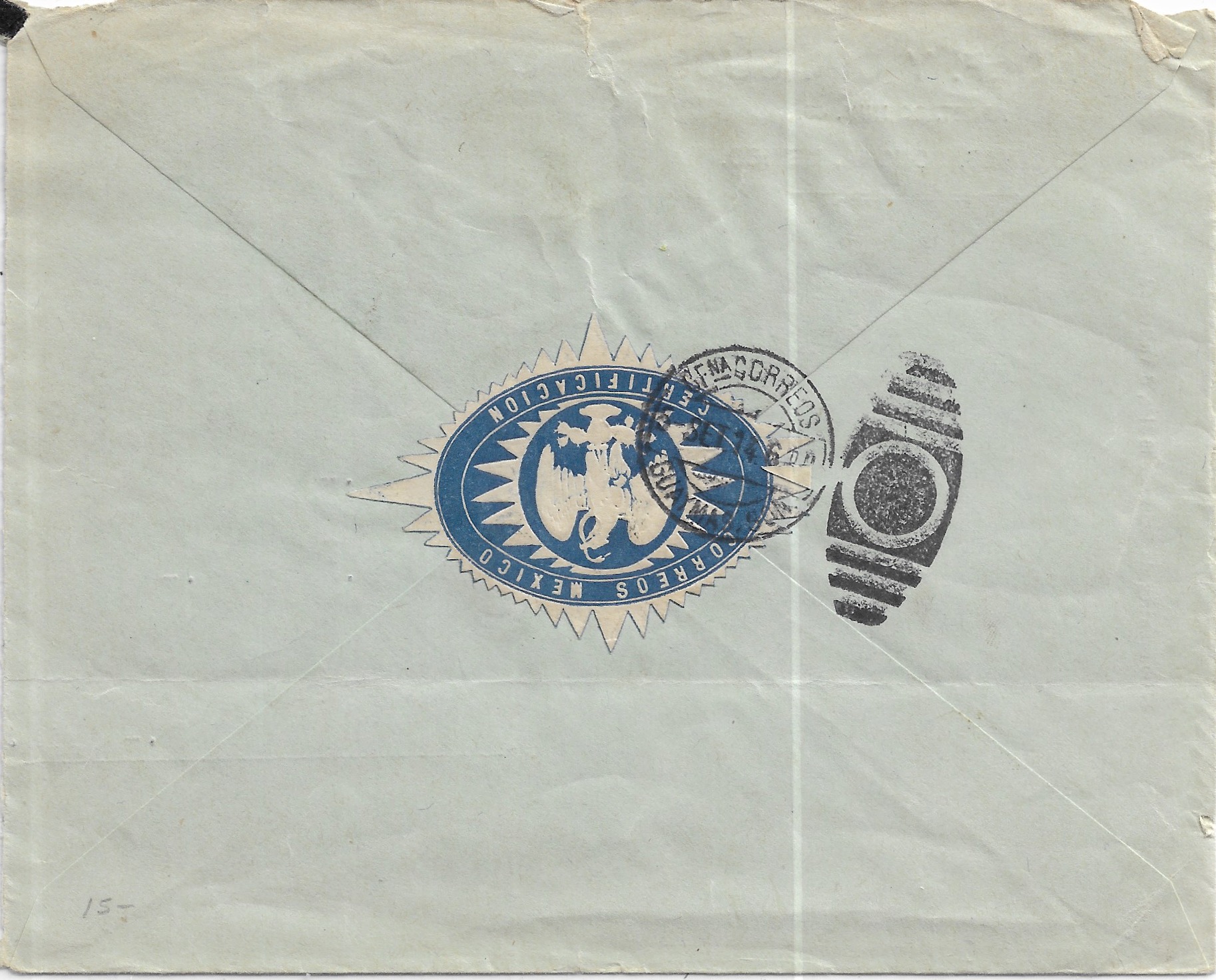 1930 1st Flight Mexico City, Mexico to Bondres, Great Britain Registered Returned to Sender. Back stamped Mexico City & Paris.