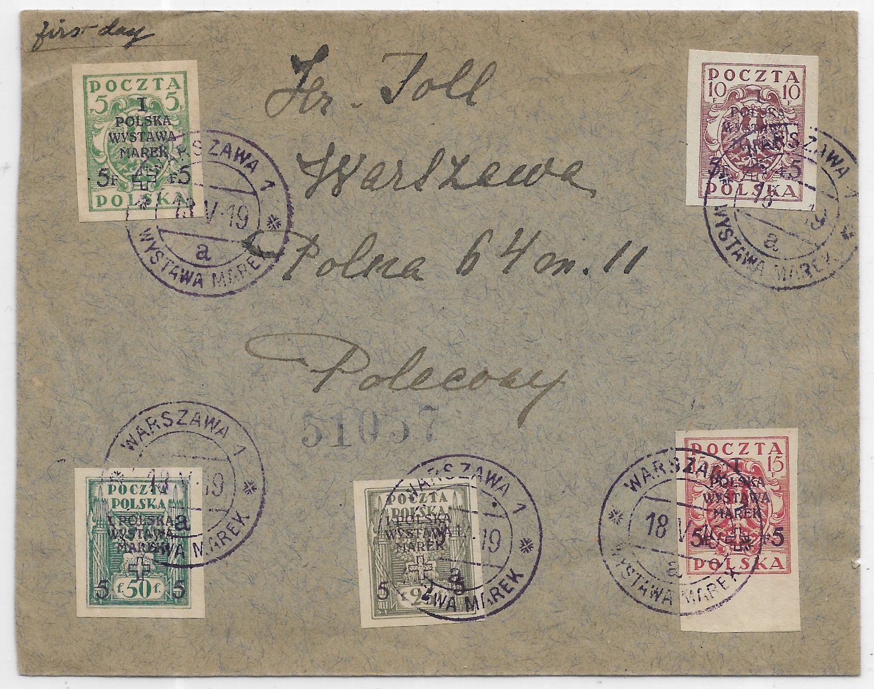 1919 Warsaw, Poland FDC, Scott #B1-B4.
