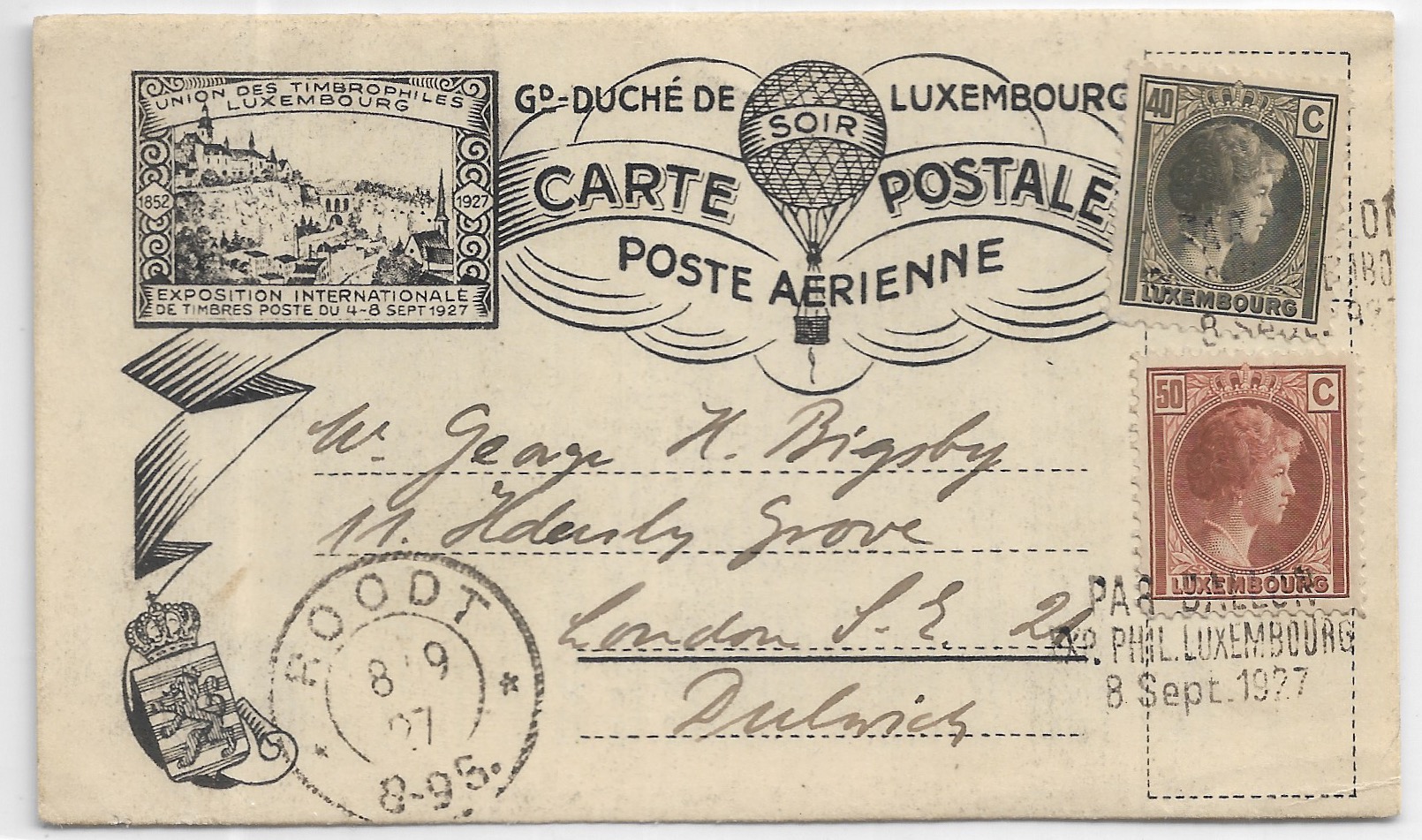 1927 Luxemburg to London, England 1st Balloon Flt.