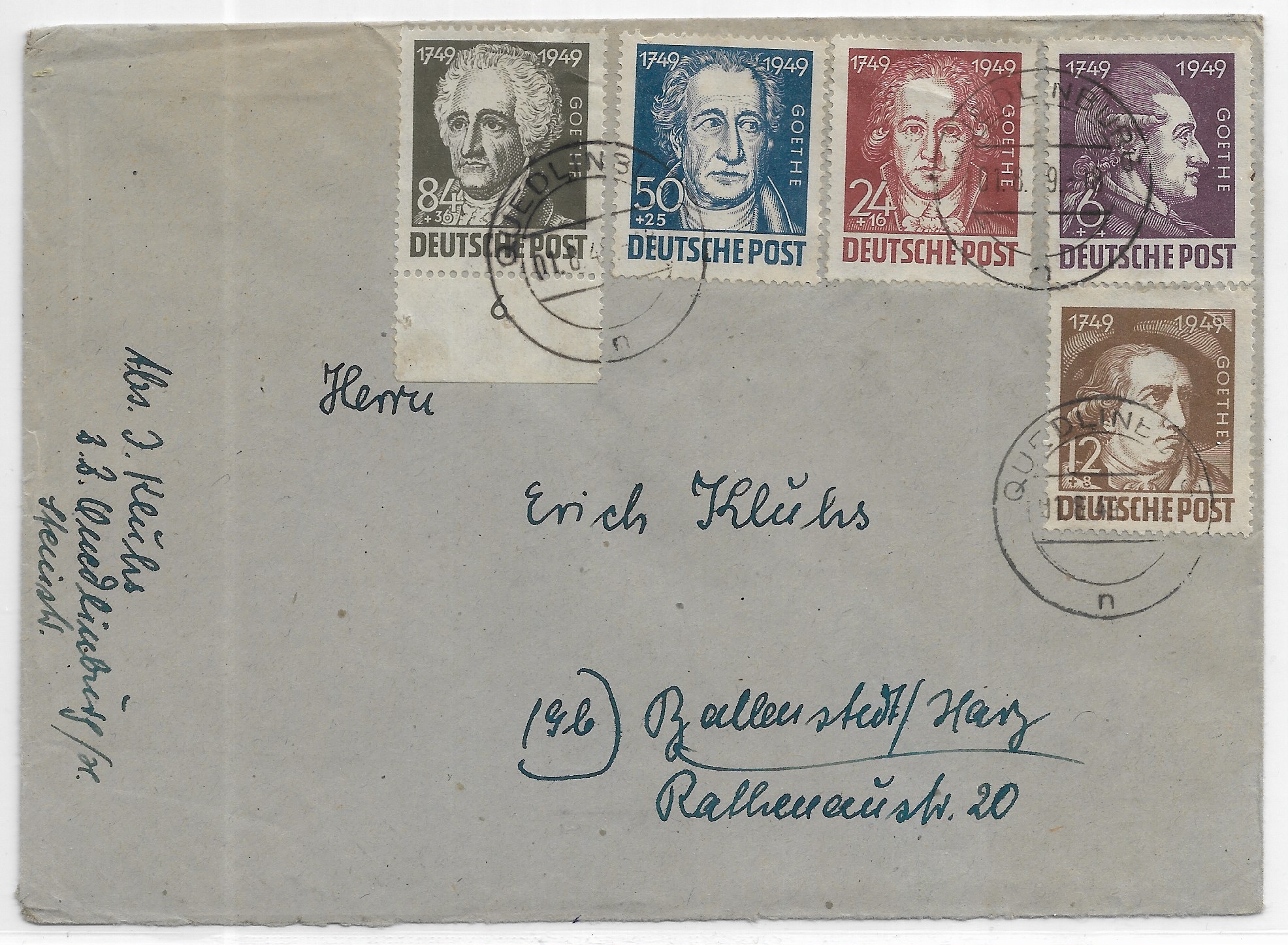 1949 Quedline to Zallenstedt, Germany Semi Postals.