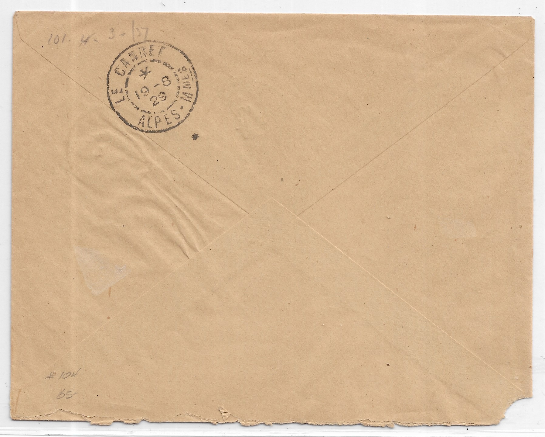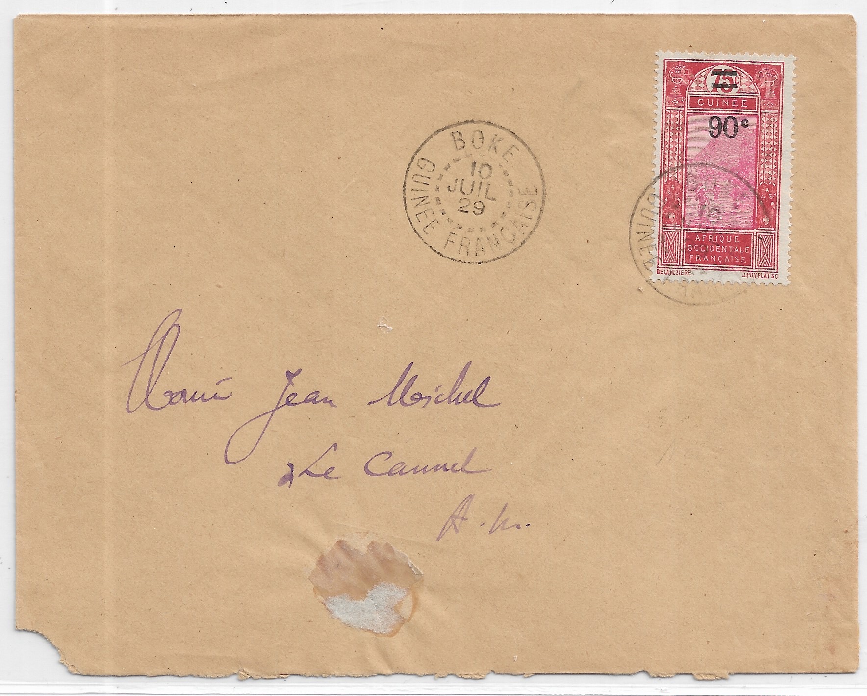 1929 Boke to Le Cannet, French Guinee solo Sc #104.