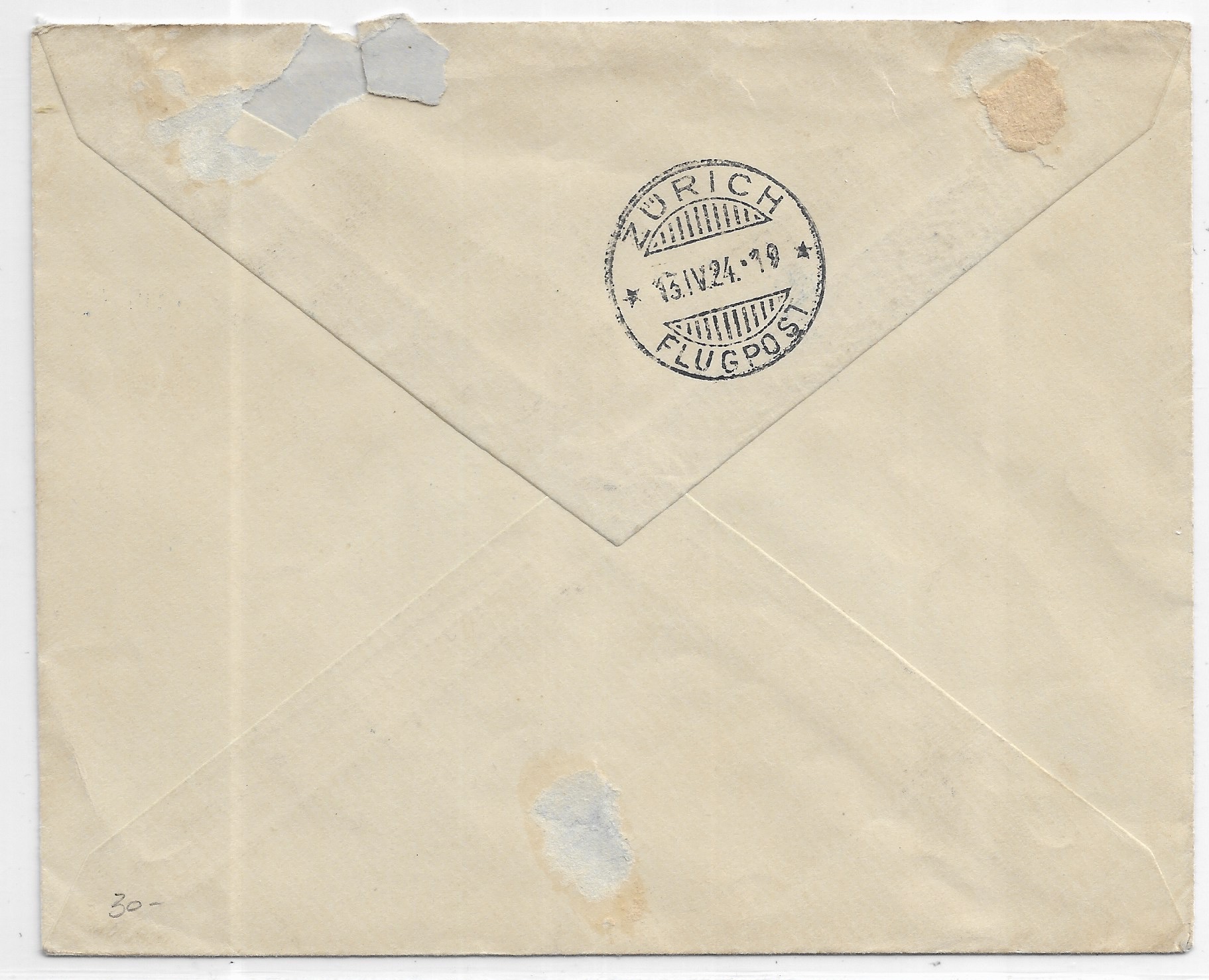 1924 Zurich to Basel, Switzerland Airmail. back stamped Zurich.