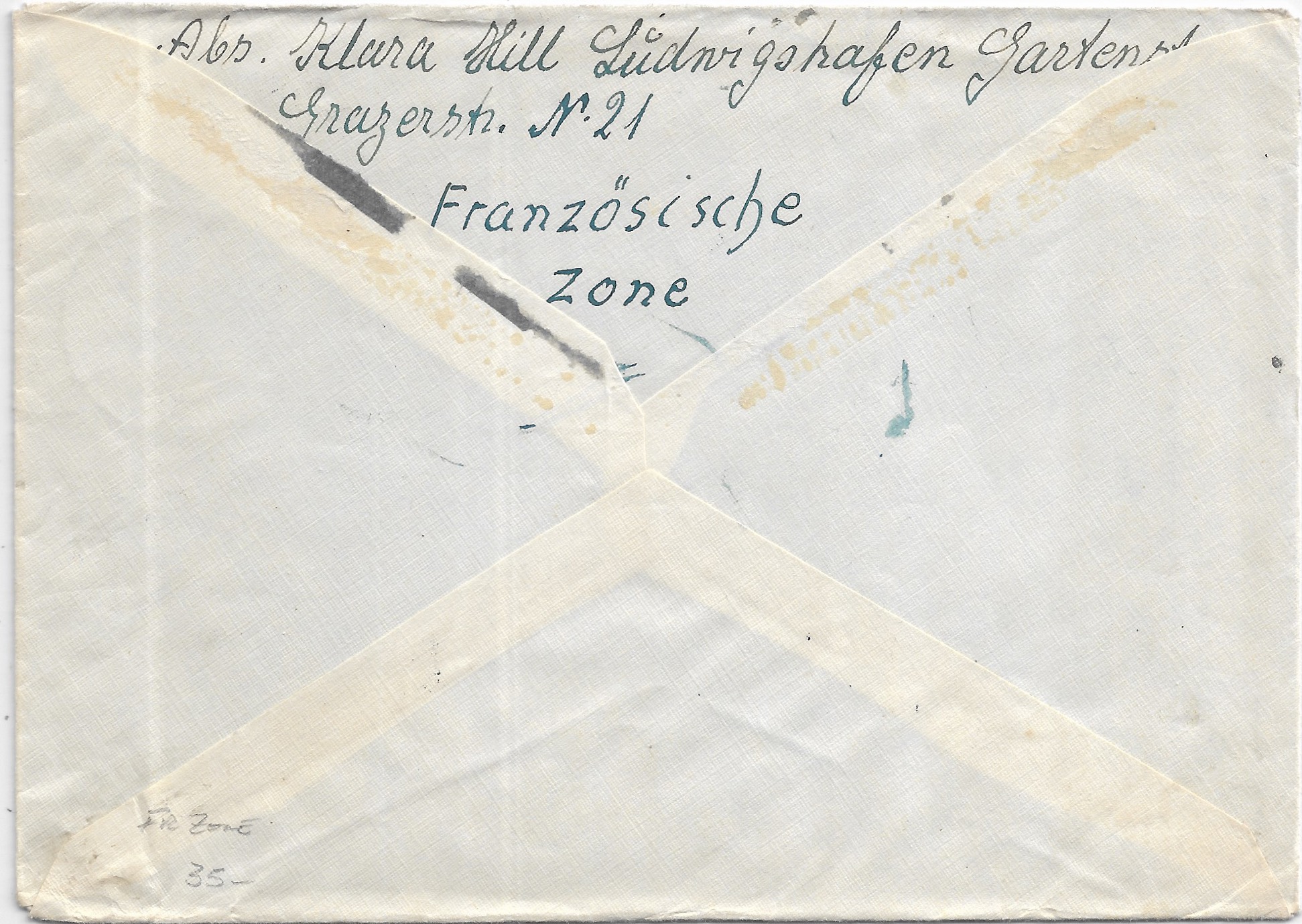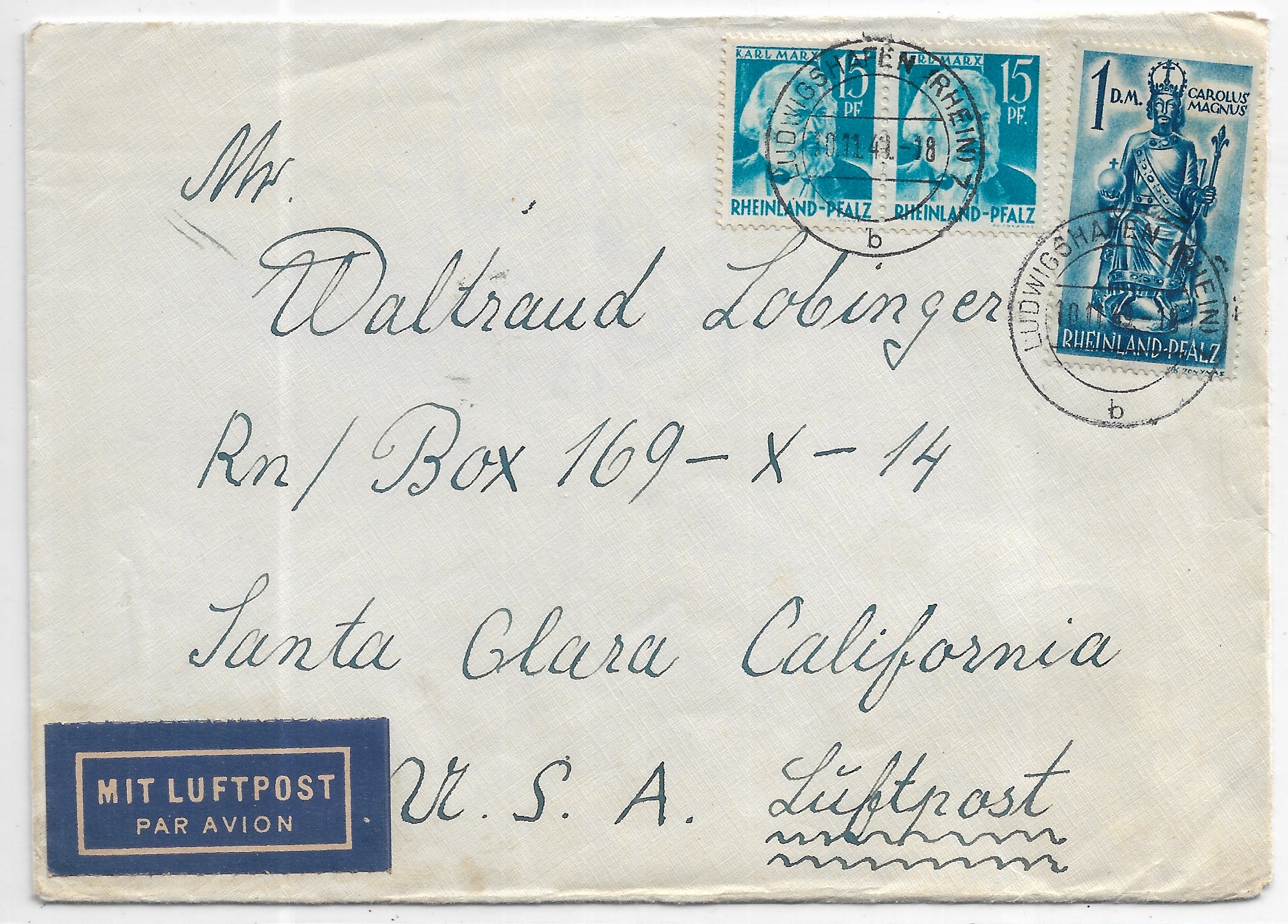 1949 Ludwigshafen, Germany, French Zone to Santa Clara, CA Airmail.