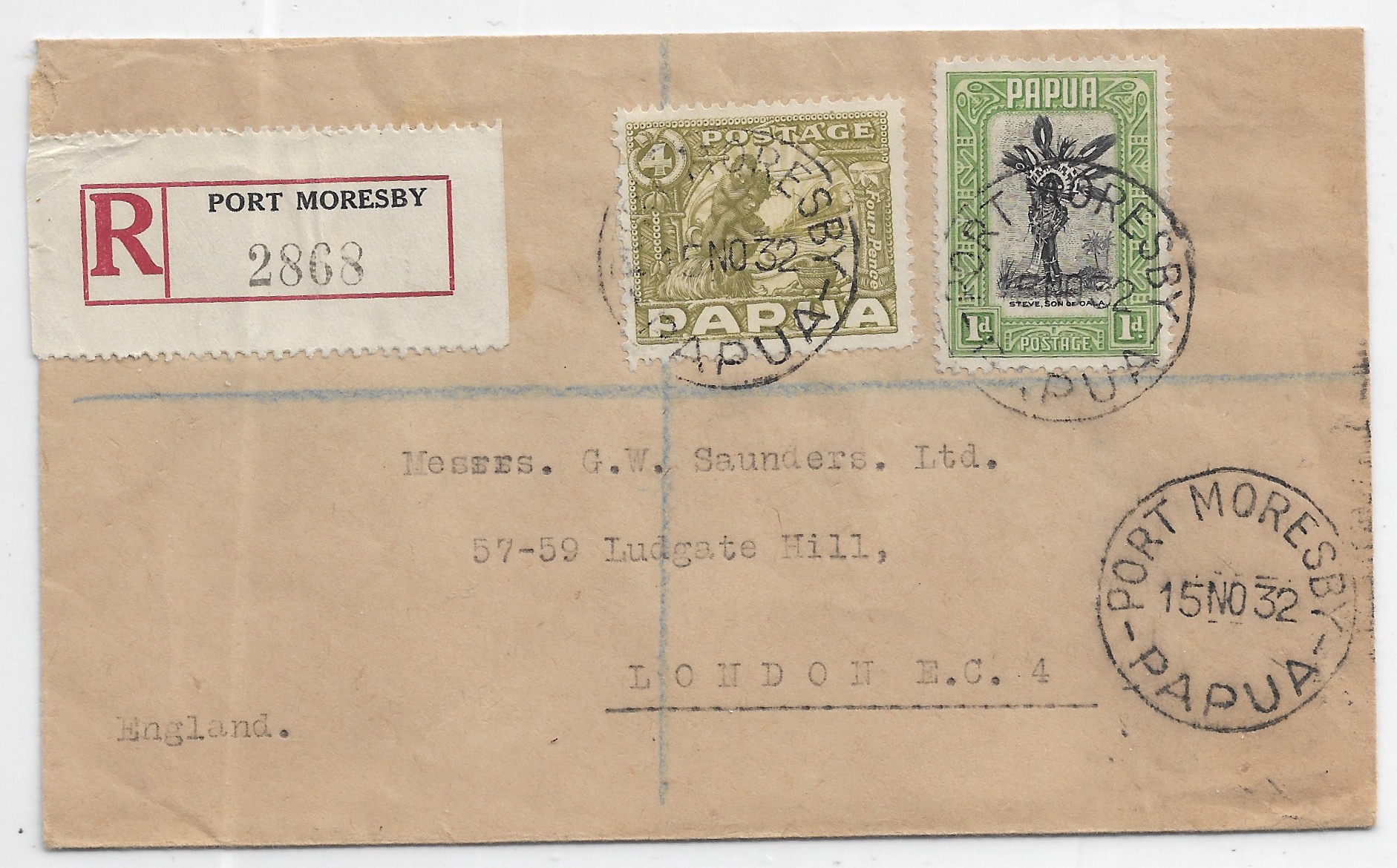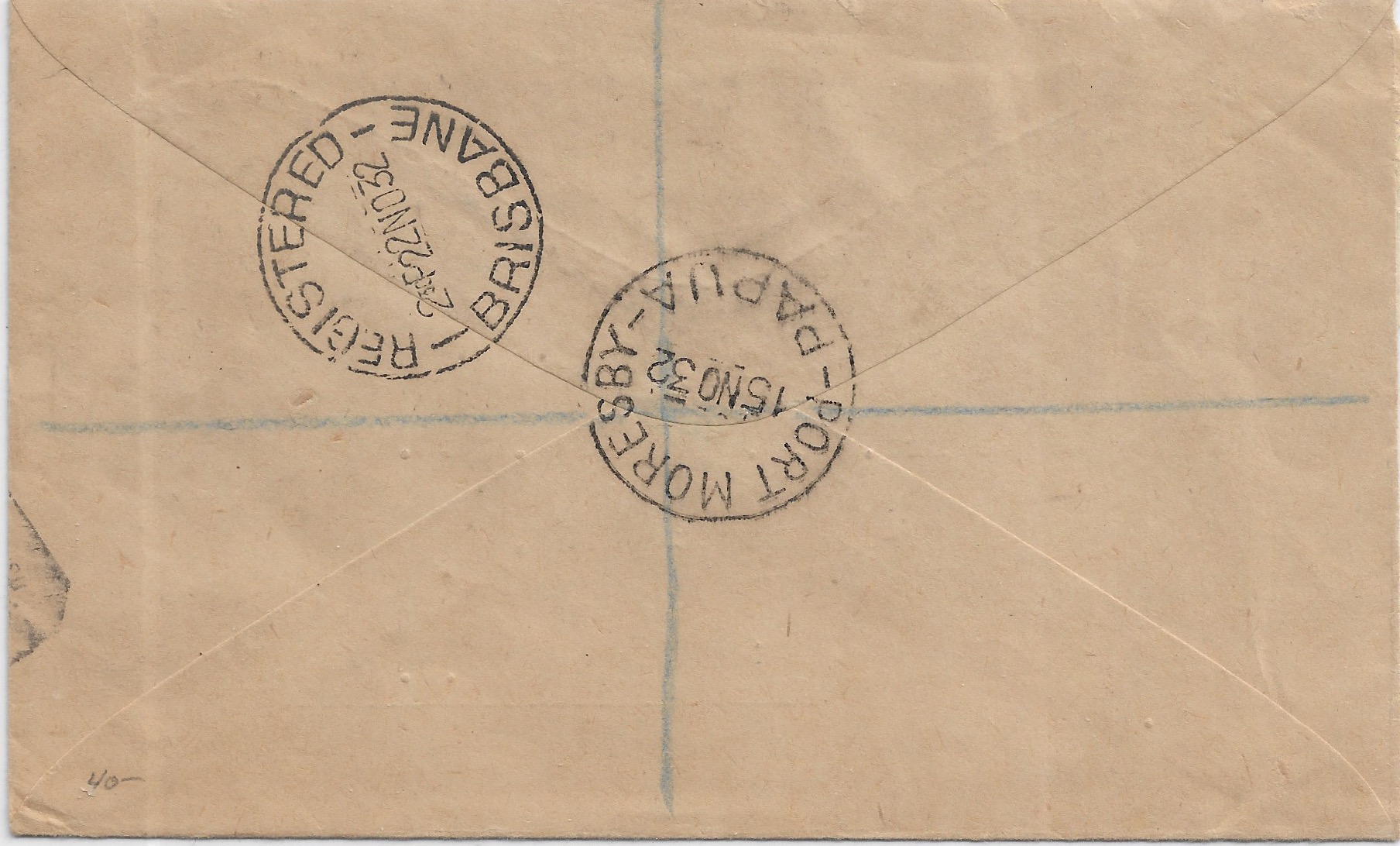 | 1932 Port Moresby, Papua to London, England via Brisbane Registered. back stamped Port Moresby & Brisbane. | Price: $40.00