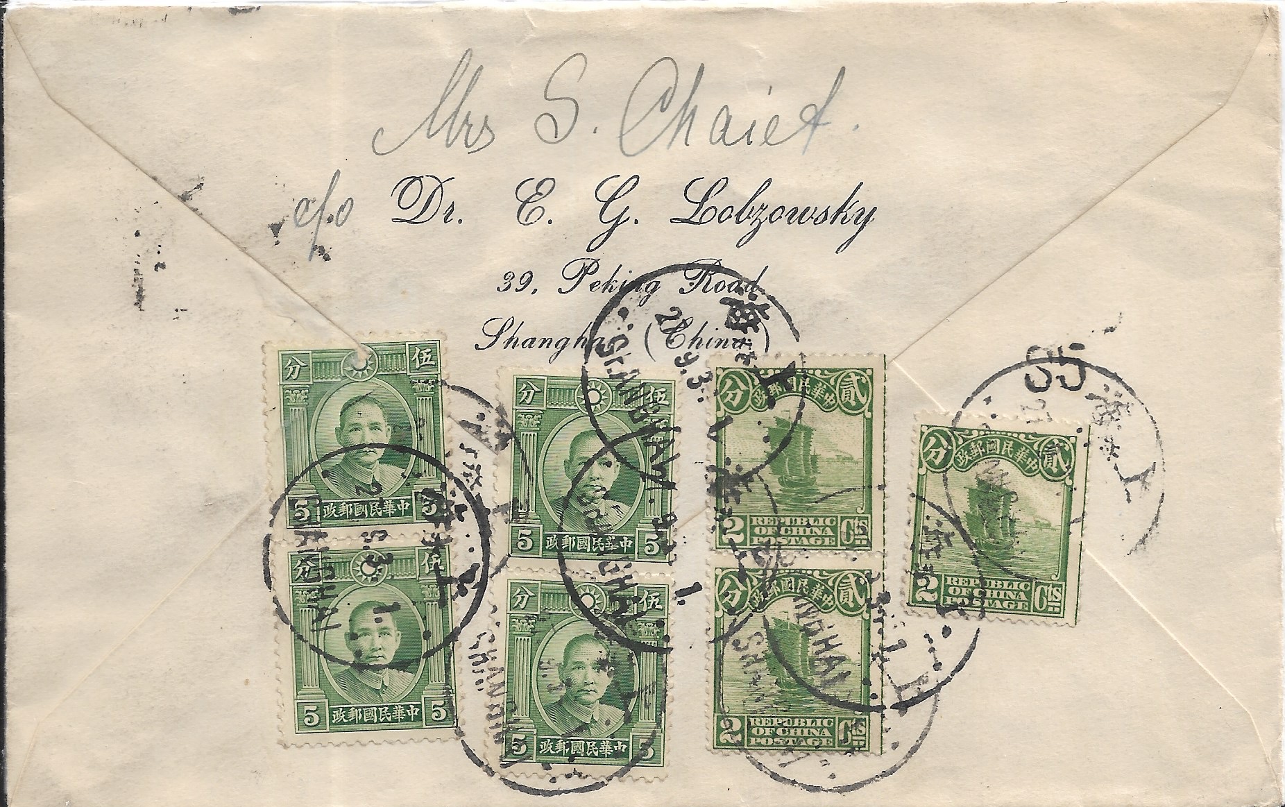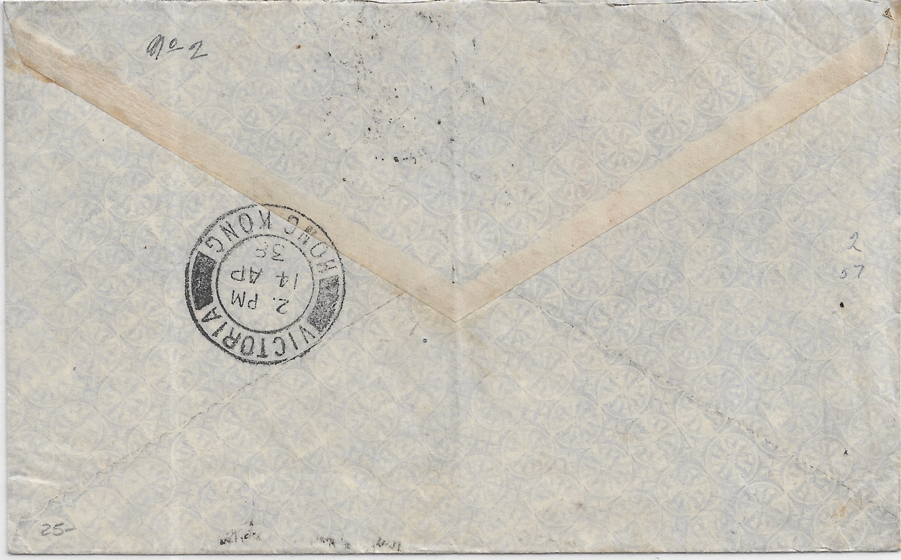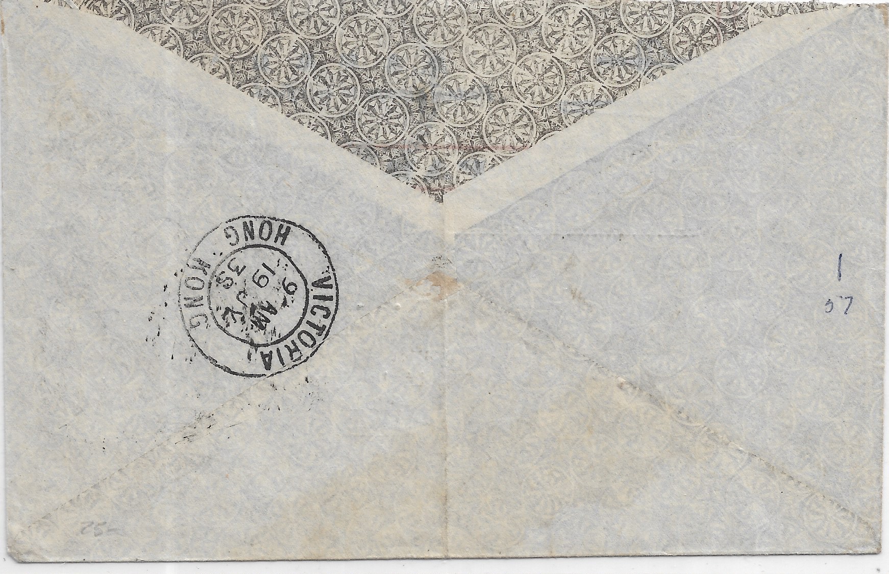 | 1938 Hankow, China to Norfolk, England Airmail. back stamped Victoria. back flap missing. | Price: $25.00