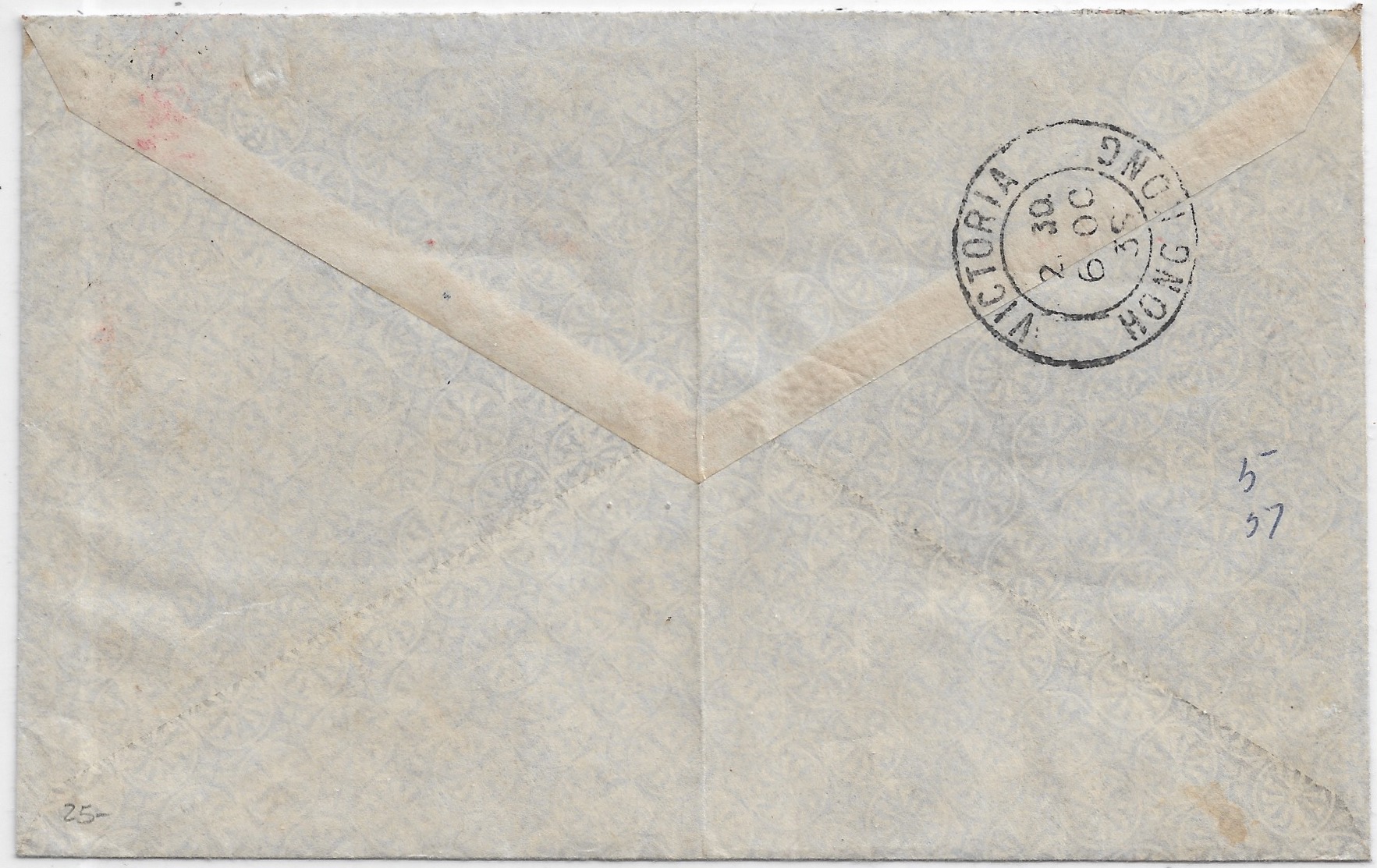 | 1937 Hong Kong to Detroit, Mi Trans-Pacific Clipper Airmail. back stamped San Francisco. | Price: $25.00