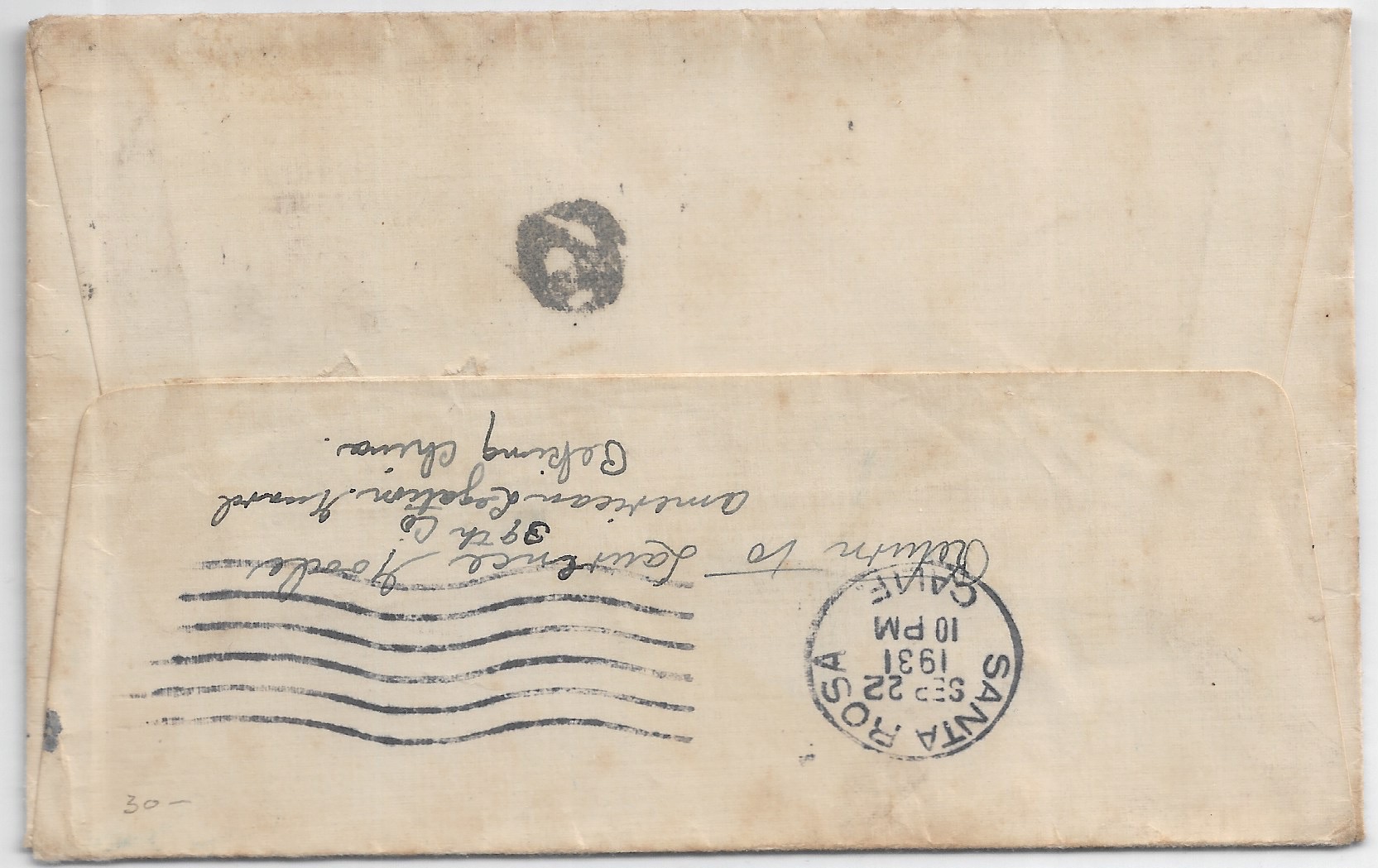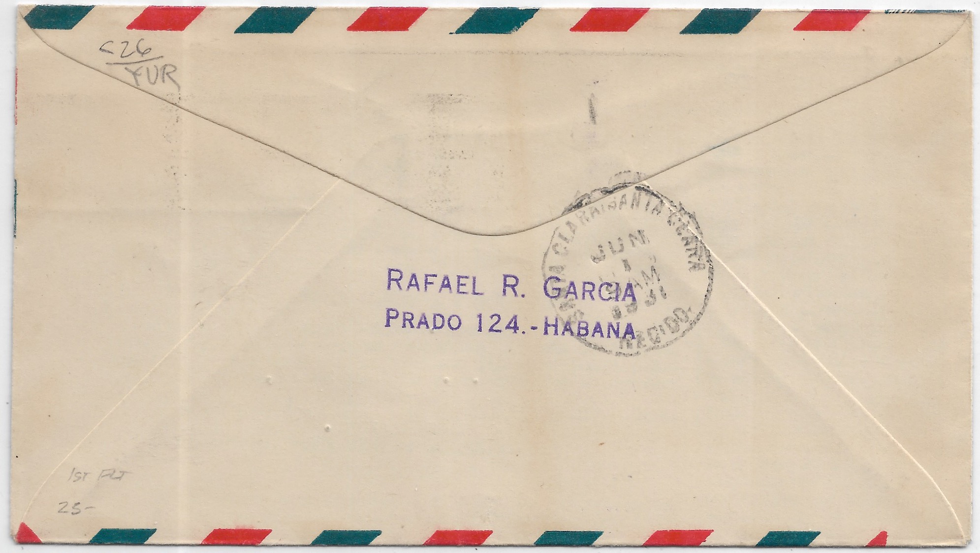 | 1931 Cienflegos to Santa Clara, Cuba 1st Flight. back stamped Santa Clara. | Price: $25.00