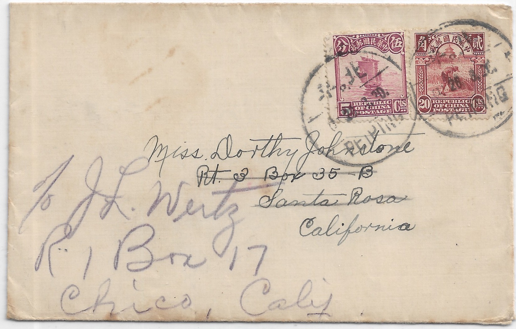| 193x 39th Co, American Legation Peking, China to Santa Rosa, Ca fwd Chico. | Price: $30.00
