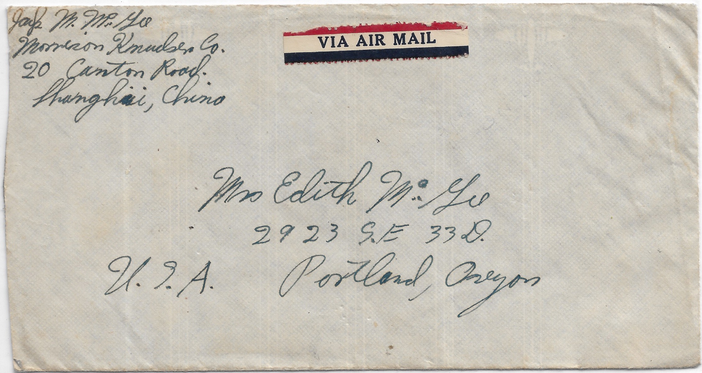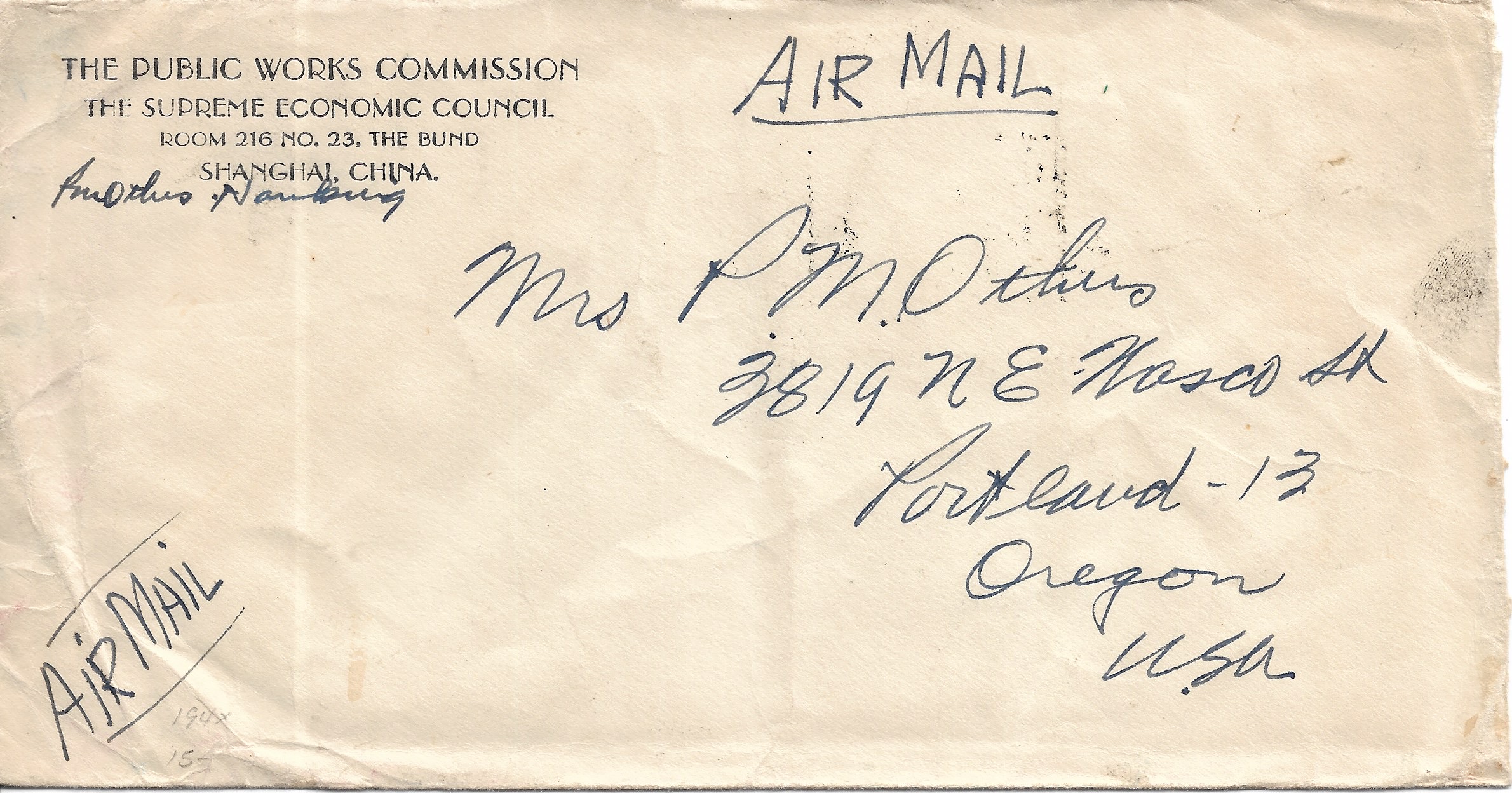 | 1940 Shanghai, China to Portland, Or Airmail. | Price: $25.00