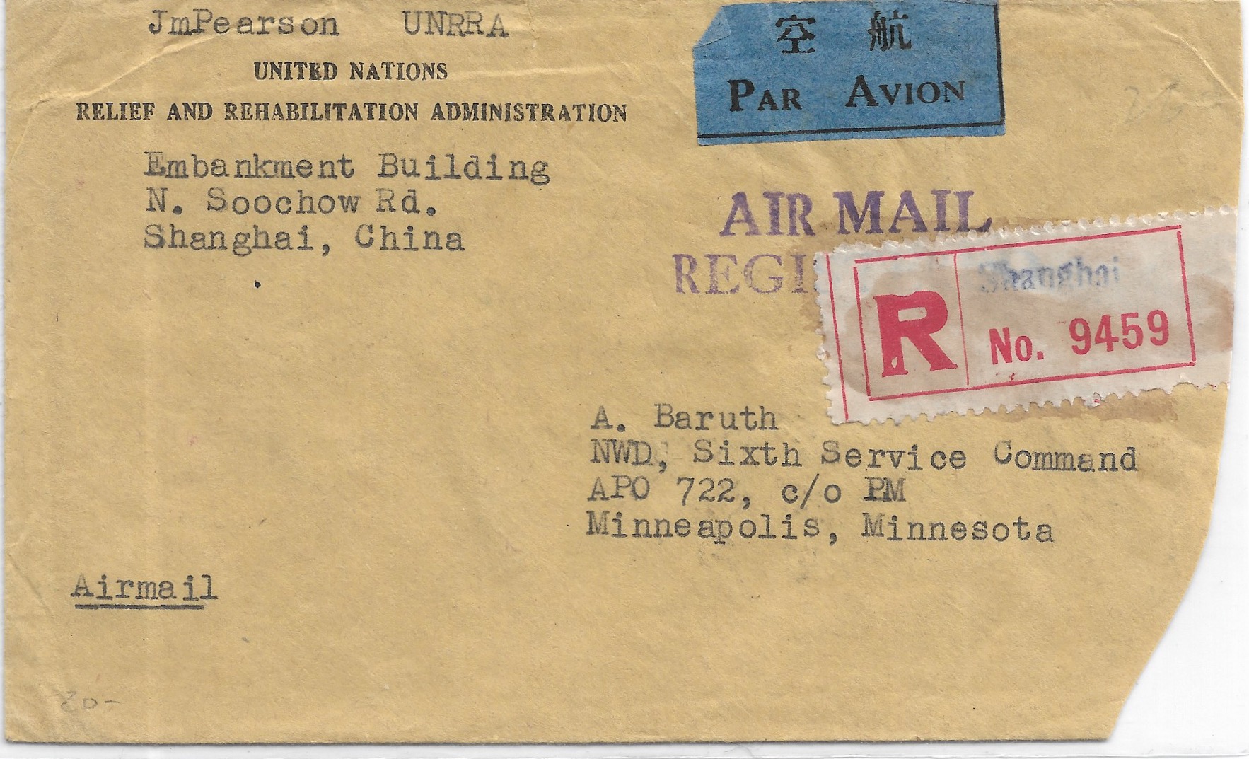 | 1946 Shanghai, China to Minneapolis, MN Registered Airmail. | Price: $20.00