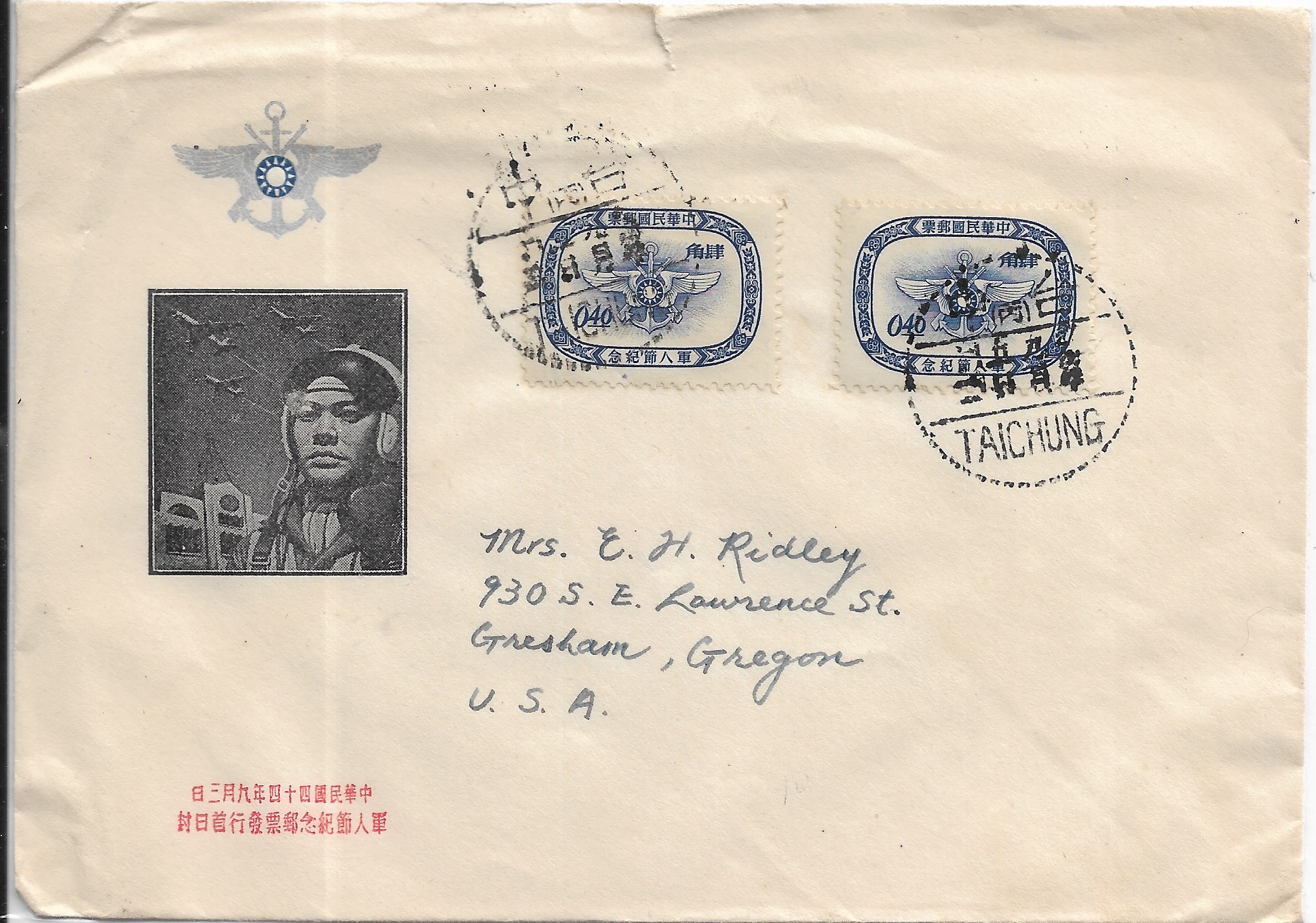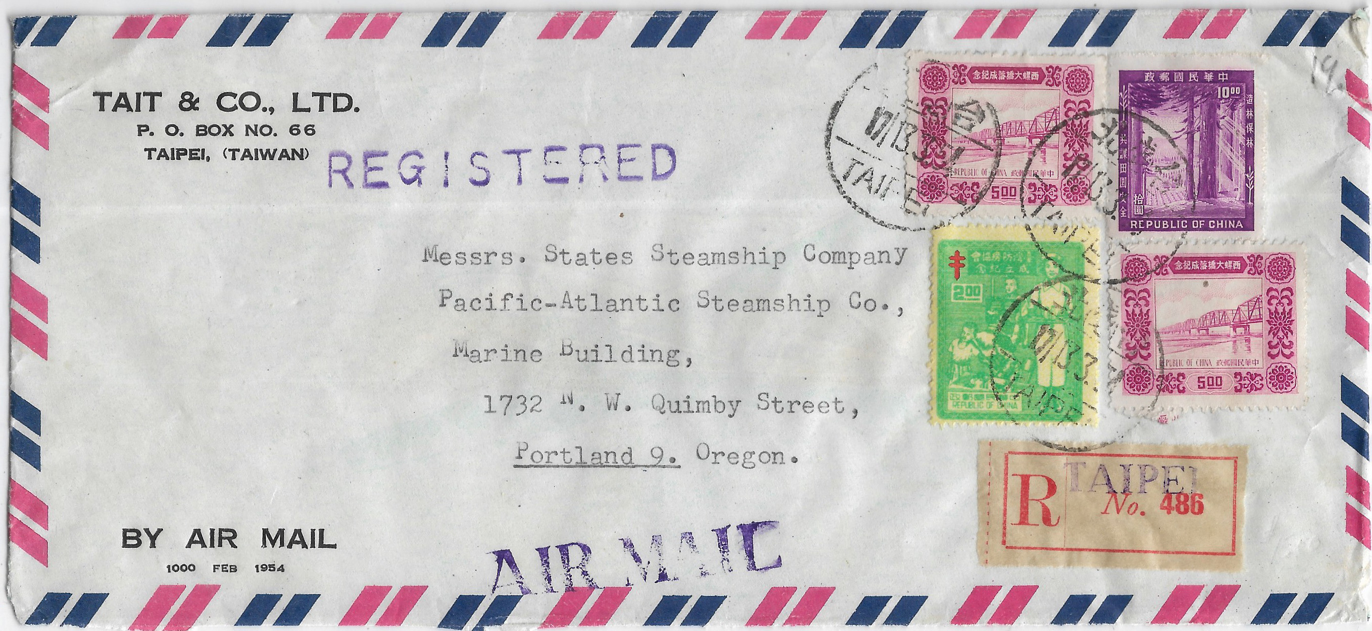 | 1954 Taipei, Taiwan to Portland, Or Airmail. back stamped Portland. | Price: $50.00